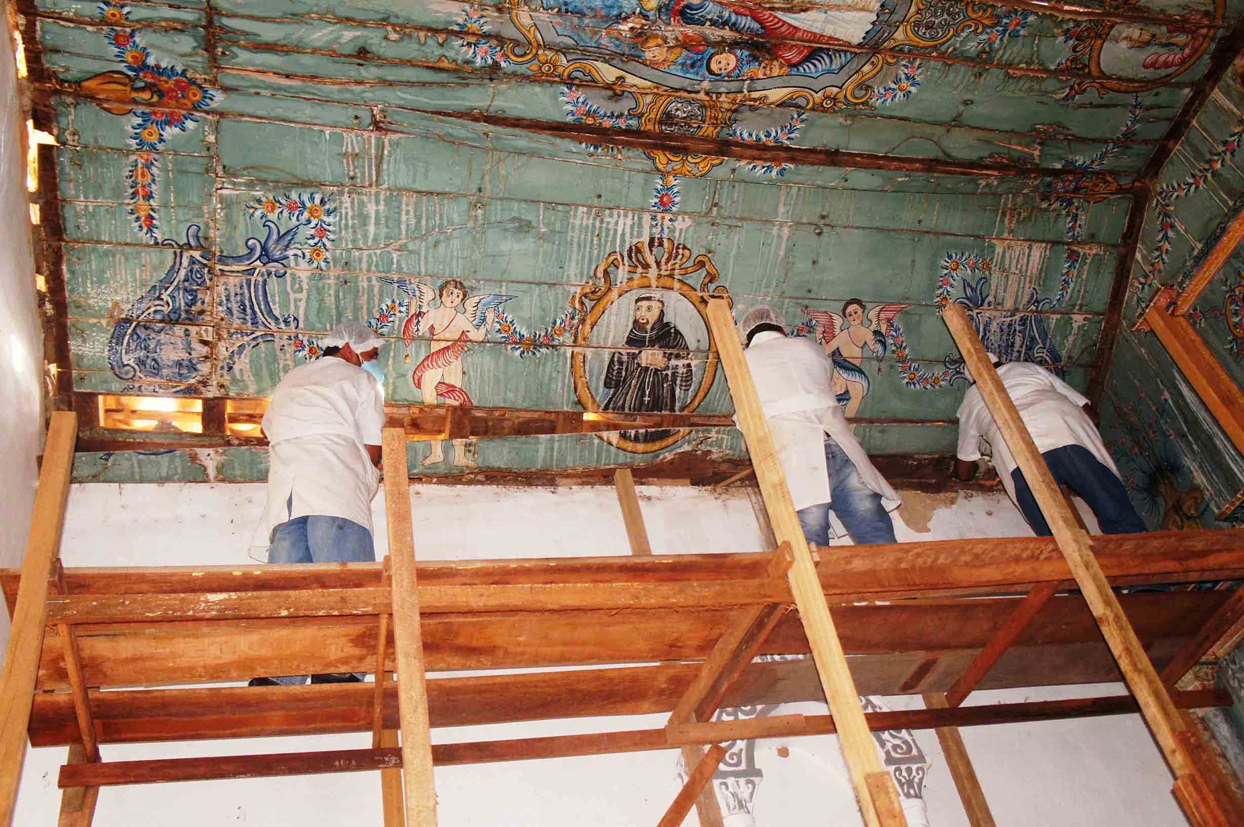 Segundo a restauradora Célia Moura e o arquiteto José Carlos Matta, responsáveis técnicos da obra, já foram realizadas a remoção dos forros de parte da capela, a higienização e a proteção da camada de cores dos materiais removidos. Além disso, o IPAC deve providenciar a sustentação do imóvel. Foi promovido um convênio de cooperação técnica entre o instituto, o município e a paróquia local. “As parcerias e apoios locais para uma intervenção como esta são fundamentais”, explica José Carlos Matta.