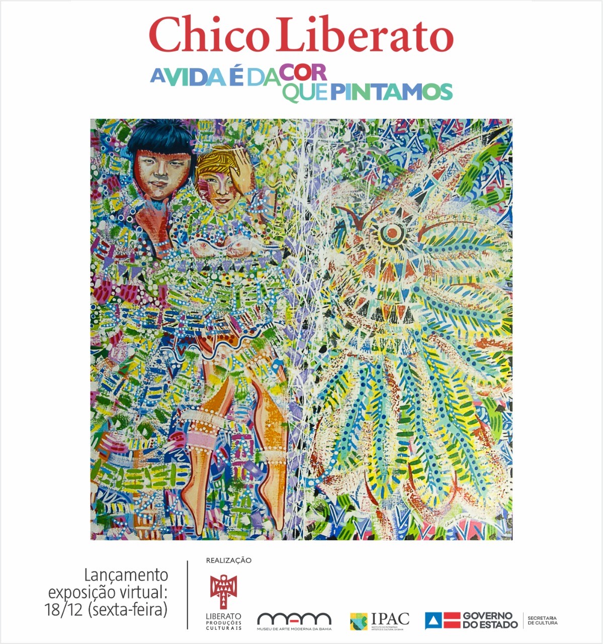 Na próxima sexta-feira (18), o artista baiano reconhecido internacionalmente, Chico Liberato, lança exposição virtual com o título “A vida é da cor que pintamos”. A iniciativa conta com as obras prediletas de seu acervo particular que estão expostas na capela do Museu de Arte Moderna da Bahia (MAM).