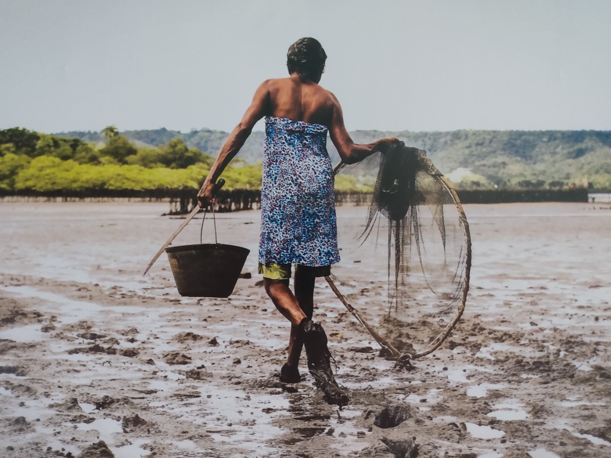 Durante a sessão fotográfica, Dona Dulce conta, entre as pisadas cansadas do caminho, a luta que ela protagoniza desde nova. Todos os dias ela trilha em direção ao mangue; onde um dia ela quase deu a luz.  A artista acrescenta que “Dulce, mãos de lama” carrega de um lado o facão que abre caminho para construirmos as pontes que nos atravessam e nos conectam a esperança de um novo horizonte; e, em outro lado, carrega um balde do que rendeu a maré que alimentará os corações dos filhos deste solo.