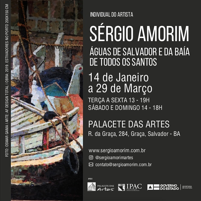 A exposição “Águas de Salvador e da Baía de Todos os Santos”, individual do artista plástico Sérgio Amorim, acontece de 14 de janeiro a 29 de março no Palacete das Artes. A mostra passa por abordagens do cotidiano de Salvador em diálogo entre o mar e as raízes da cidade, além de direcionar para um olhar sensível pelo cenário soteropolitano e suas relações com o recôncavo e com o sertão baiano.