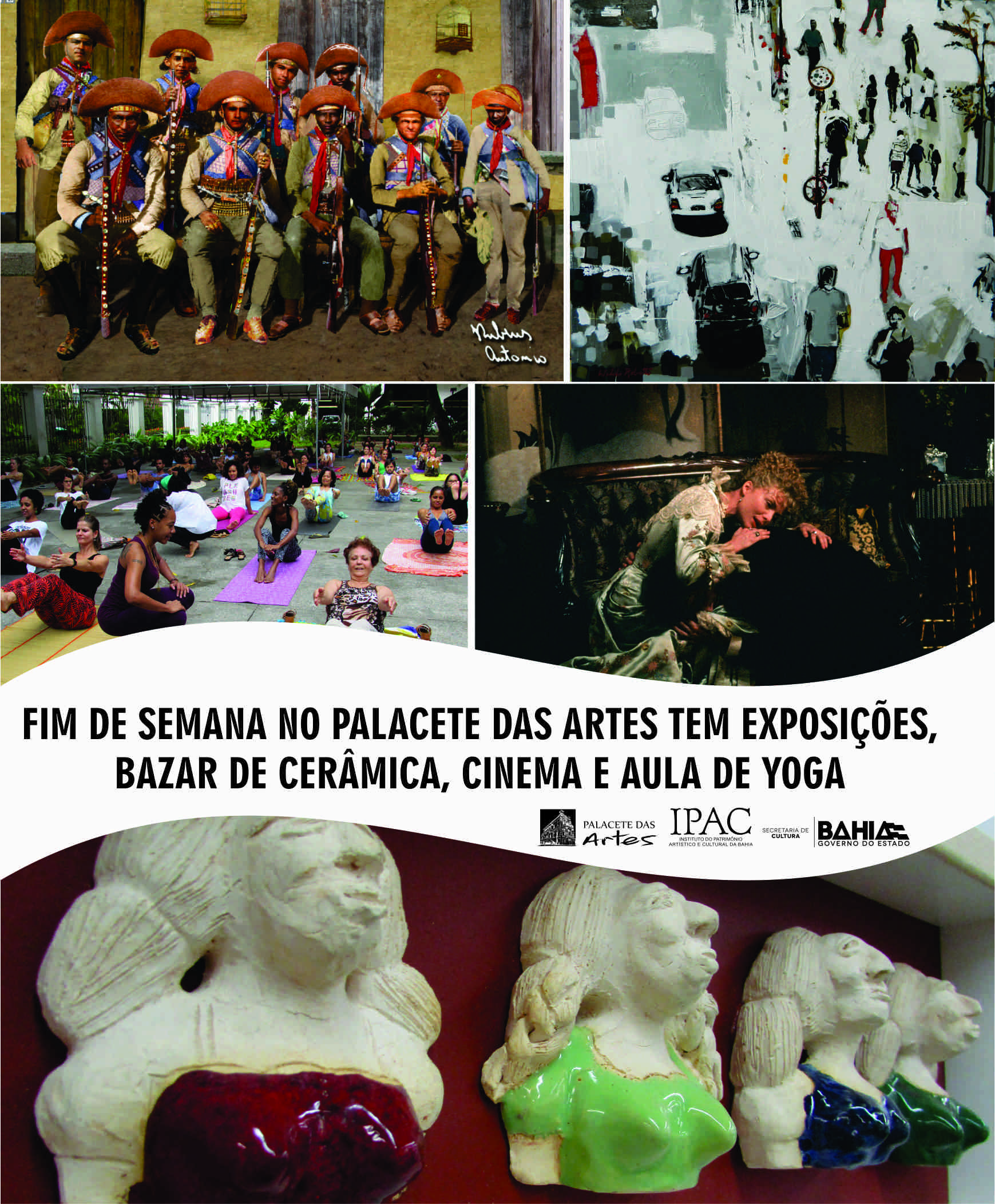 Neste final de semana, no Palacete das Artes, baianos e turistas poderão curtir cinema, aula de yoga, bazar de cerâmica, além das exposições em cartaz.