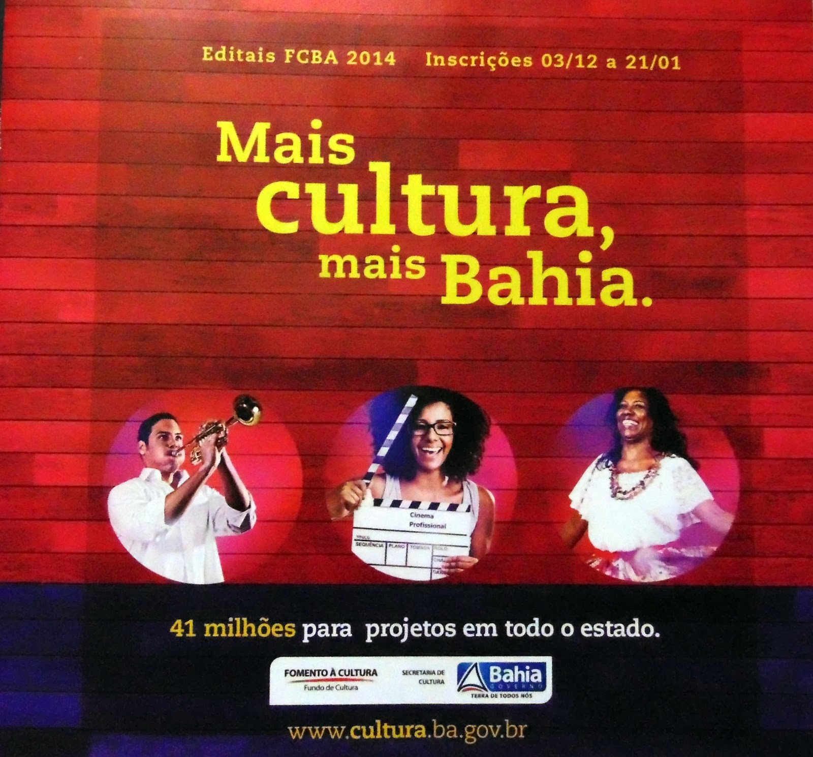 Em 2014, serão destinados R$ 41 milhões ao Fundo de Cultura da Bahia. Para estes editais, serão investidos R$ 30,66 milhões, o que representa um acréscimo de cerca de 10% do recurso em relação aos mesmos editais em 2013, quando foram destinados 27,8 milhões.