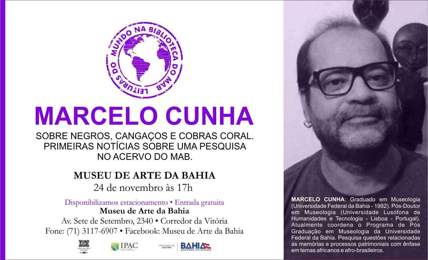 O projeto Leituras do Mundo da Biblioteca do Museu de Arte da Bahia promove a sua oitava edição nesta quinta-feira (24), às 17h, com palestra do museólogo Marcelo Cunha. que escolheu por tema o sugestivo título : "Sobre negros, cangaço e cobras coral " resultado de pesquisas feitas no acervo do MAB sobre os impactos causados pela ação do homem na formação étnico- antropológica de regiões do Nordeste brasileiro. Entrada gratuita.