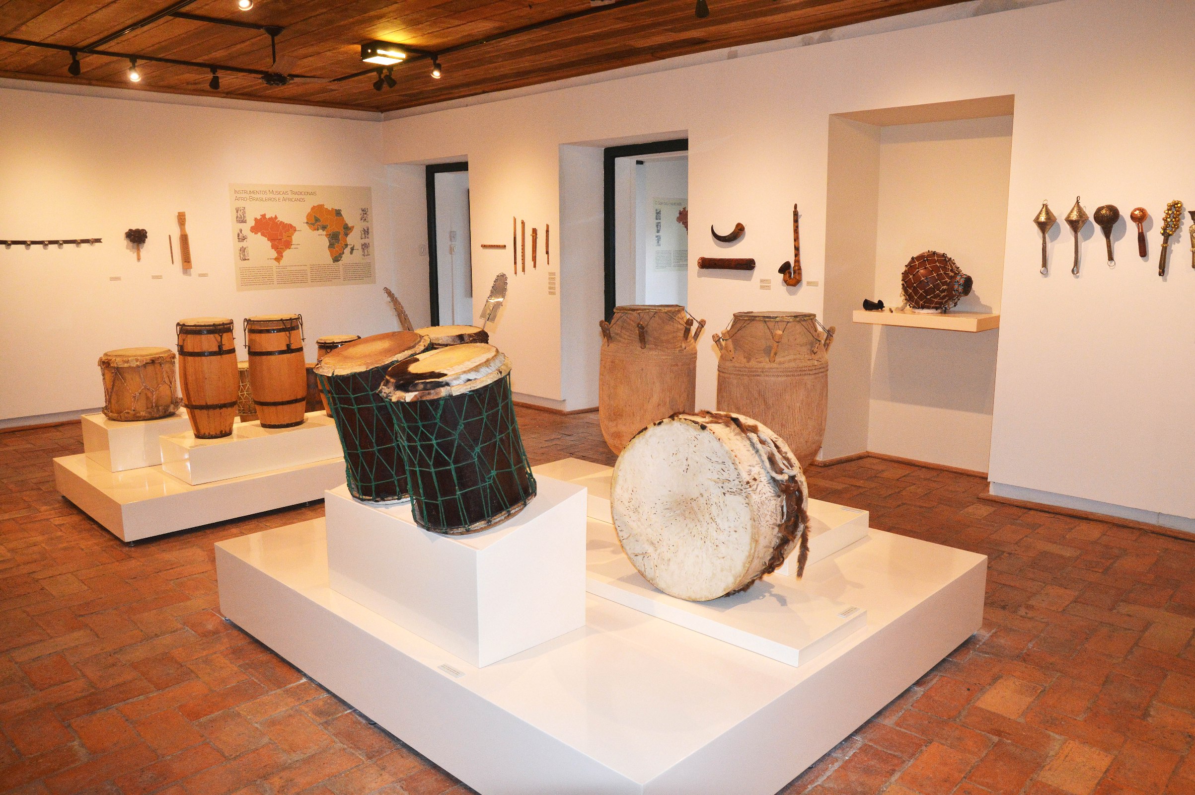 Destaques da sala dos instrumentos africanos e afro-brasileiros: o berimbau é o instrumento mais característico da Bahia. Esse instrumento monocórdio de arco e corda tem antepassados milenares em vários países. É composto por um arco de madeira vergado com uma cabaça cortada na parte inferior e uma única corda de arame tensionada, que é percutida por uma vareta de madeira acompanhada de um caxixi (pequeno chocalho de palha ou vime trançado com alça para segurar). Um dobrão (moeda, pedra roliça ou ruela de metal), segurado na altura da cabaça, ao tocar a corda interfere na vibração, dando ao som, timbres diferentes. Para a maioria dos estudiosos, o berimbau atual é de origem africana banto. Há registros de seu uso no Brasil, pelos afrodescendentes, nas ruas (vendedores ambulantes e pedintes) e nas festas populares sendo, depois, incorporado à roda de capoeira.