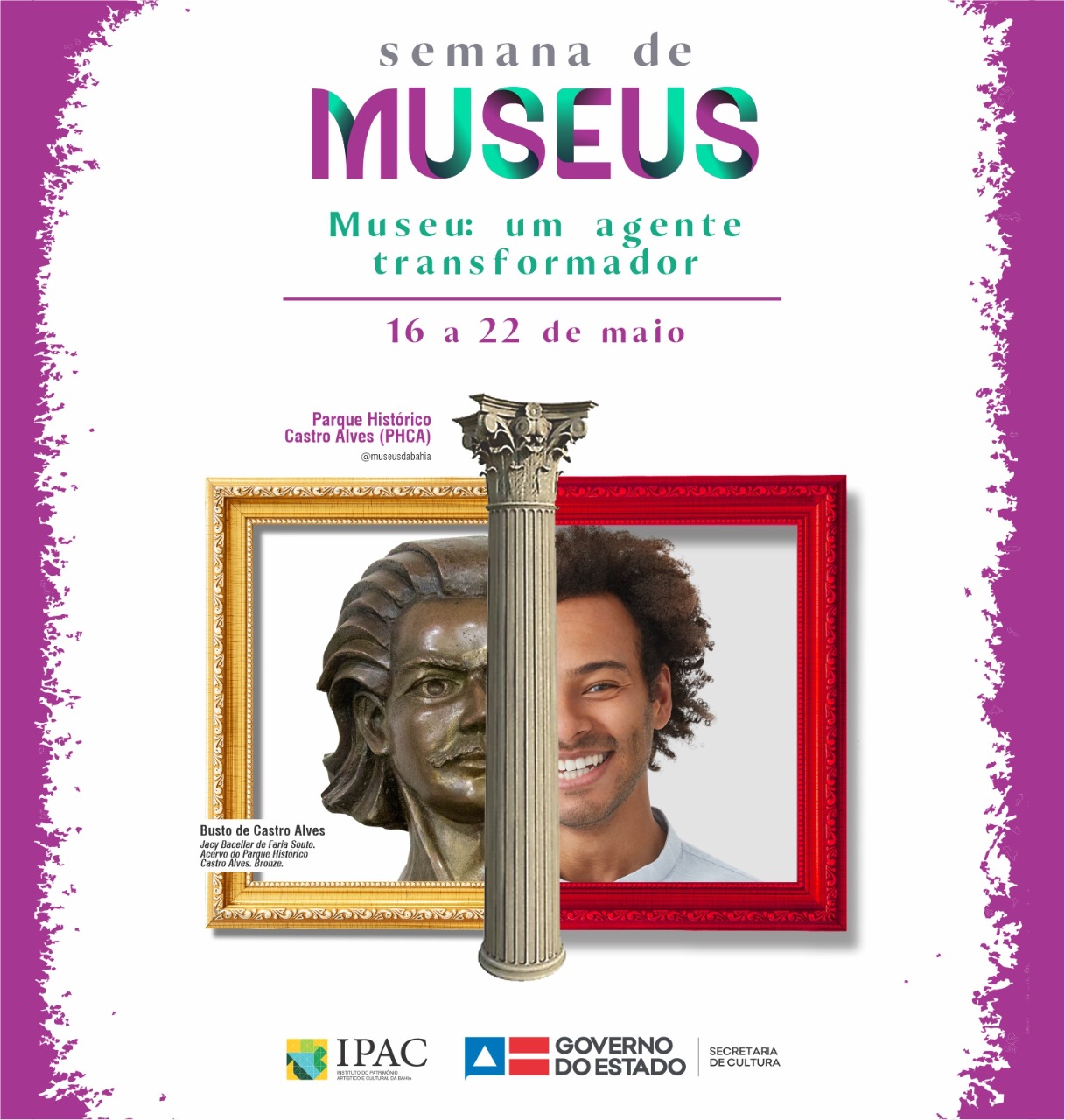 A Semana de Museus chega a sua vigésima edição celebrando o poder dessa instituição fundamental para a preservação e valorização da nossa cultura e do nosso patrimônio. Entre os dias 16 e 22 de maio, os museus administrados pelo Instituto do Patrimônio Artístico e Cultural da Bahia (Ipac), autarquia vinculada à Secretaria de Cultura do Estado da Bahia (SecultBA), participam do evento nacional promovido pelo Instituto Brasileiro de Museus (Ibram).