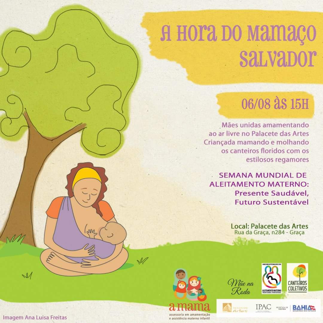 Neste sábado (6 de agosto), a partir das 15h, o Palacete das Artes sediará o projeto HORA DO MAMAÇO. A expressão “Mamaço” surgiu na França em 2006, quando mães resolveram se reunir para amamentar seus filhos de forma simultânea em um encontro nacional. Durante o evento ocorrerá uma Oficina de Jardinagem, em parceria com os Canteiros Coletivos; uma Roda de Conversa com o grupo Mães na Roda, além de contação da história do livro “Amamentar é tudo de bom!”. A Hora do Mamaço terá a presença de mães que amamentam, da sociedade que apoia o movimento e musicalização com Gabriel Macedo do Grupo Espaço Musical.