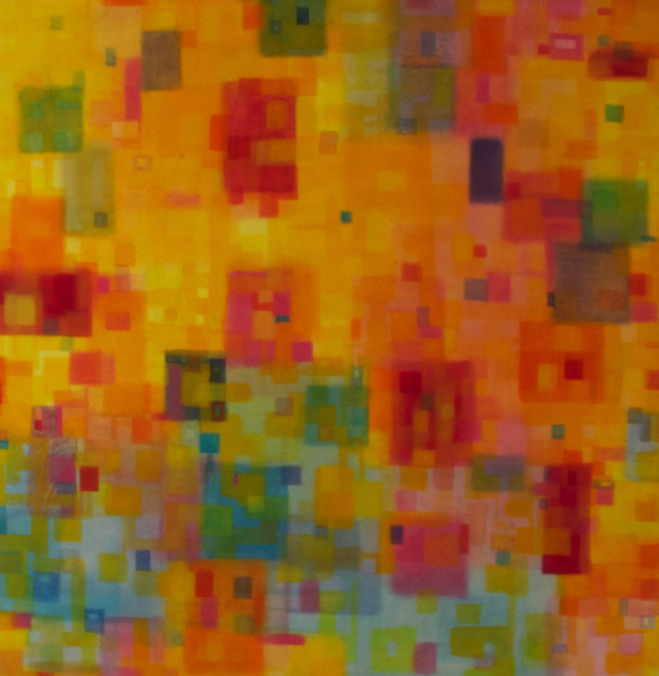 “Saulo Portela durante muito tempo pintou quadrados flutuantes num espaço indeterminado. Cada quadrado é, ao mesmo tempo, ele mesmo, e a relação que mantém com os outros, próximos pela superposição das linhas e remotos pelo jogo das associações coloridas. Através deles busca mergulhar nosso olhar numa vibração luminosa pura. Estes tons quentes, frequentemente vermelho e laranja que se opõem aos tons frios, permite-nos acessar ao mistério do espaço verdadeiro: a sua profundidade insondável.”