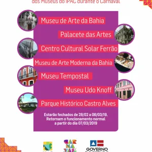 Museus do Ipac não irão funcionar durante o Carnaval 2019