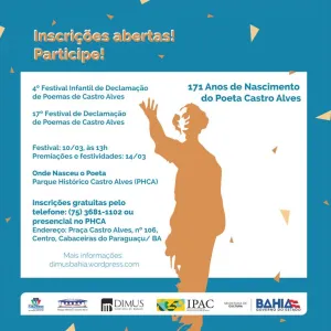 Abertas as inscrições para os Festivais em homenagem aos 171 anos de Castro Alves