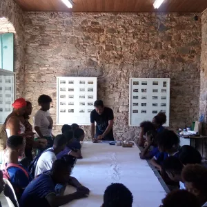 Oficina de estamparia em tecido com tema afro no Museu Tempostal