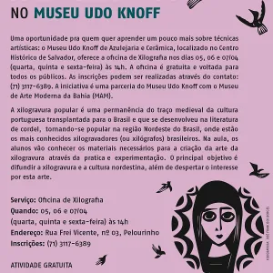 Oficina gratuita de Xilografia acontece no Museu Udo Knoff