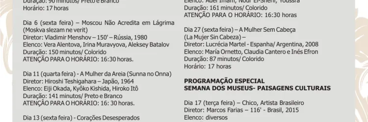 Programação Dimus – 04 a 11/05