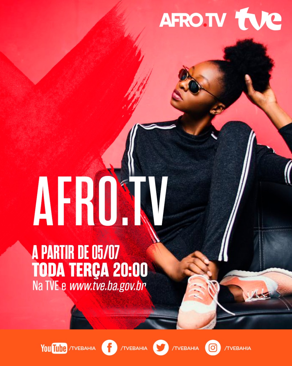 A TVE vai exibir quatro webséries da Afro.TV, plataforma digital especializada em conteúdo negro, a partir desta terça-feira, 5 de julho. A programação inclui entrevistas, talk shows e documentários sobre música, história, cultura e sexualidade sempre às terças, às 20h. A iniciativa é fruto da parceria entre a TVE e a Afro.TV, que produz conteúdos 100% digitais, voltados para moradores das periferias e grupos que historicamente tiveram pouca visibilidade na produção audiovisual brasileira.