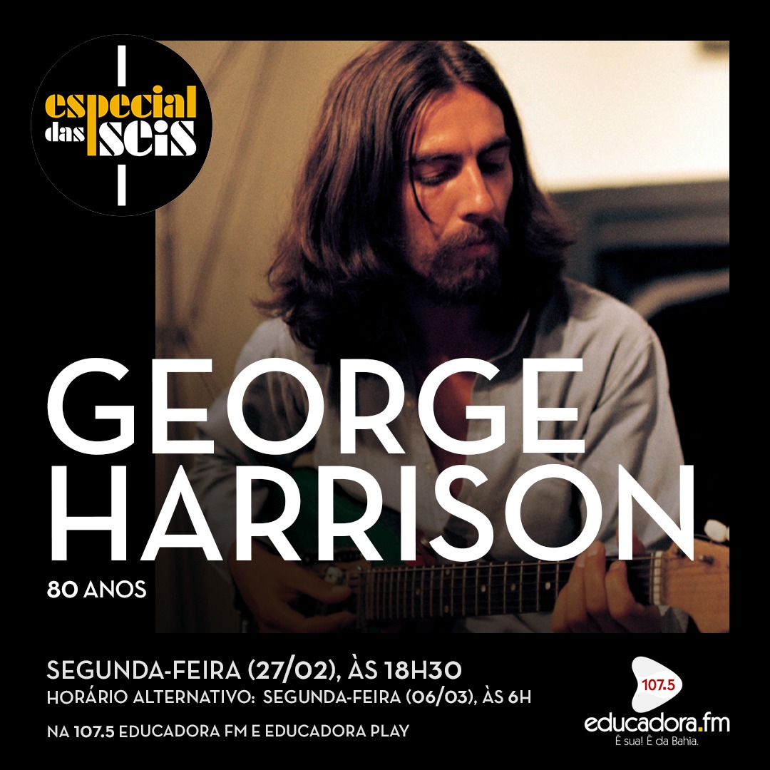 No Especial das Seis desta segunda-feira (27) você vai curtir nossa homenagem ao músico, cantor e compositor inglês George Harrison, que se estivesse entre nós, teria completado 80 anos de idade no último dia 25 de fevereiro. Para celebrar a data, preparamos uma seleção com alguns dos principais sucessos desse ex-Beatle e um dos grandes nomes do rock mundial.