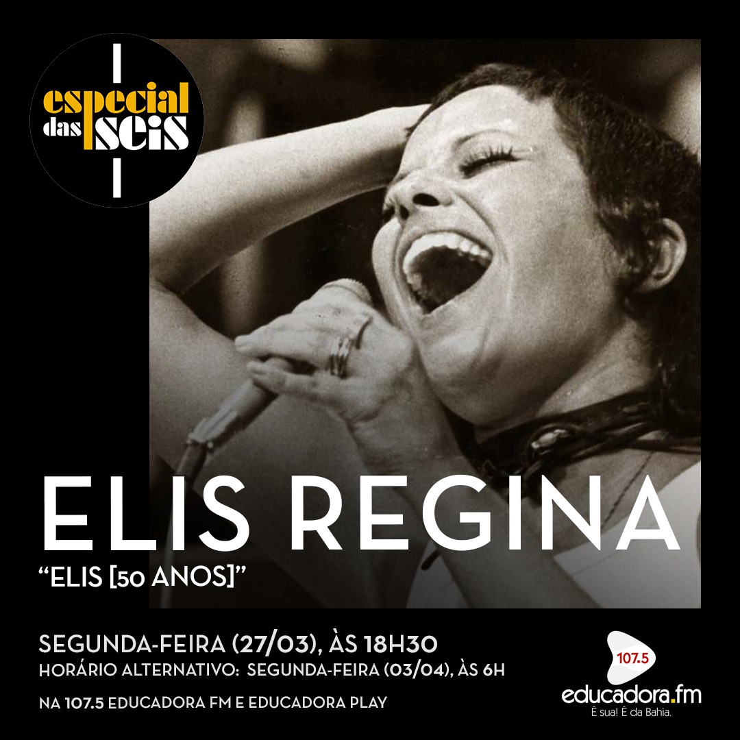 Nesta segunda (27), no Especial das Seis, você vai conferir o álbum “Elis”, o décimo primeiro trabalho da cantora gaúcha Elis Regina, a eterna “pimentinha”, que está completando 50 anos de lançado. O repertório é composto por 10 faixas, que foram produzidas por Marco Mazzola, conta com arranjos do pianista Cesar Camargo Mariano e a participação do violonista e guitarrista Roberto Menescal.