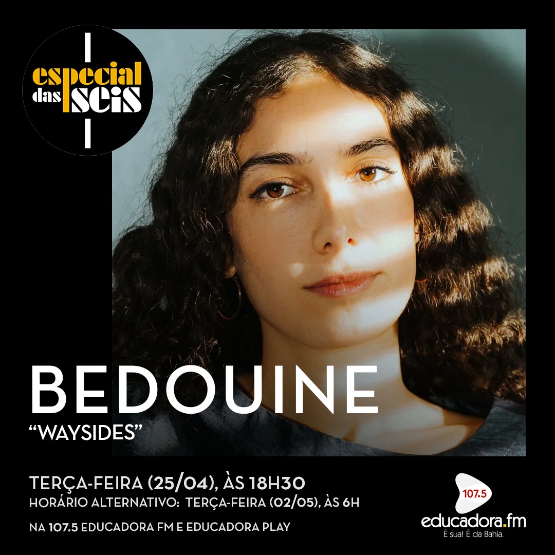 Nesta terça (25), o Especial das Seis traz como atração o folk-pop da cantora e compositora sírio-americana Bedouine com o álbum “Waysides”, lançado 2021. O disco conta com 10 faixas, sendo nove composições autorais, que exploram temas como o amor e a perda, sendo acompanhadas pelos arranjos e vocais suaves da artista. Ela também assina a produção do álbum em parceria com o músico e produtor americano Gus Seyffert, que já trabalhou com nomes do quilate de Adele, Beck e Sia.
