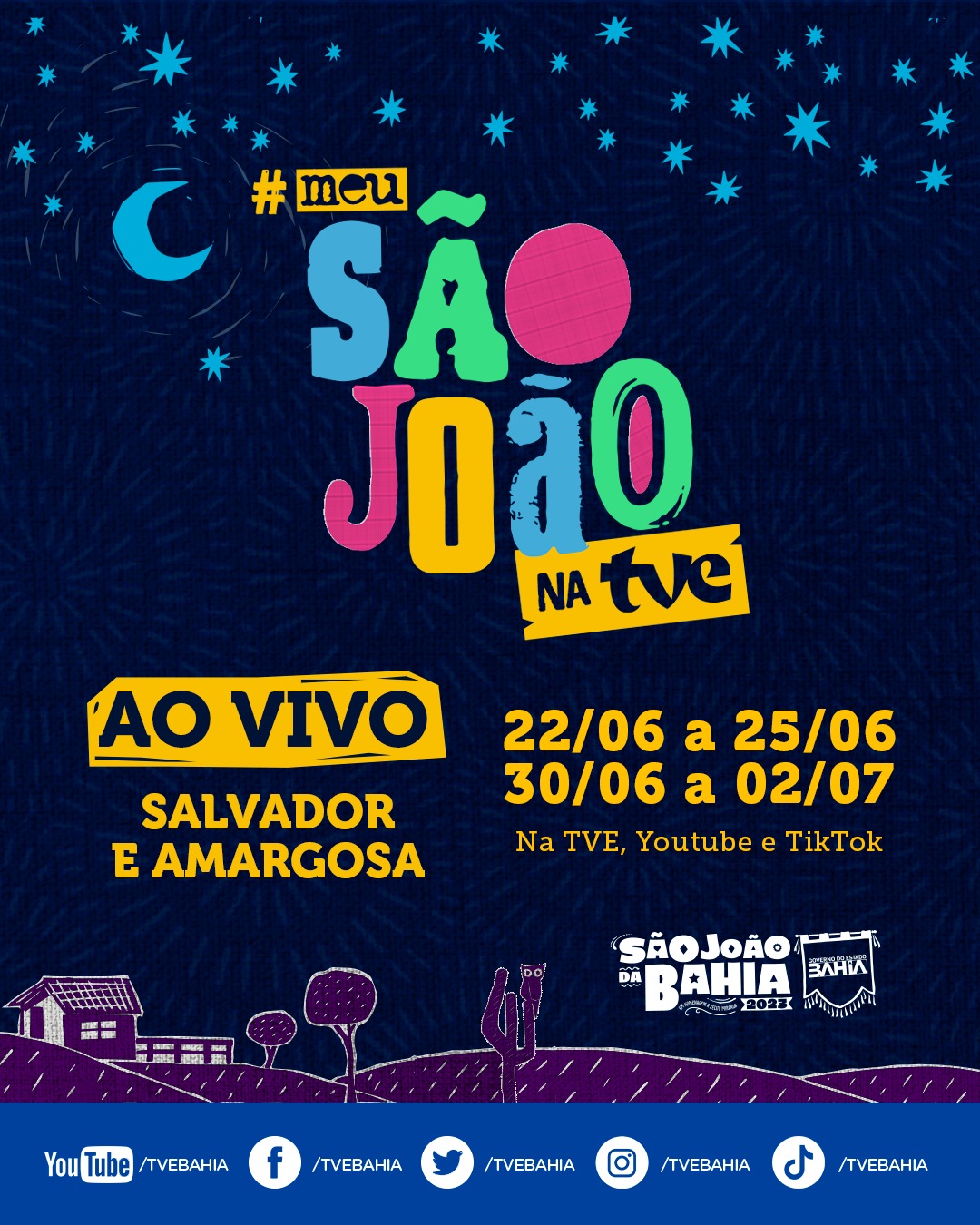A TVE e a Rádio Educadora FM vão transmitir ao vivo os shows do São João da Bahia. A cobertura dos festejos no Parque de Exposições, Pelourinho e da cidade de Amargosa acontecem de 22 a 25, a partir das 18h, e retornam na semana seguinte, de 30 de junho a 02 de julho, para celebrar o São Pedro e o Bicentenário da Independência.