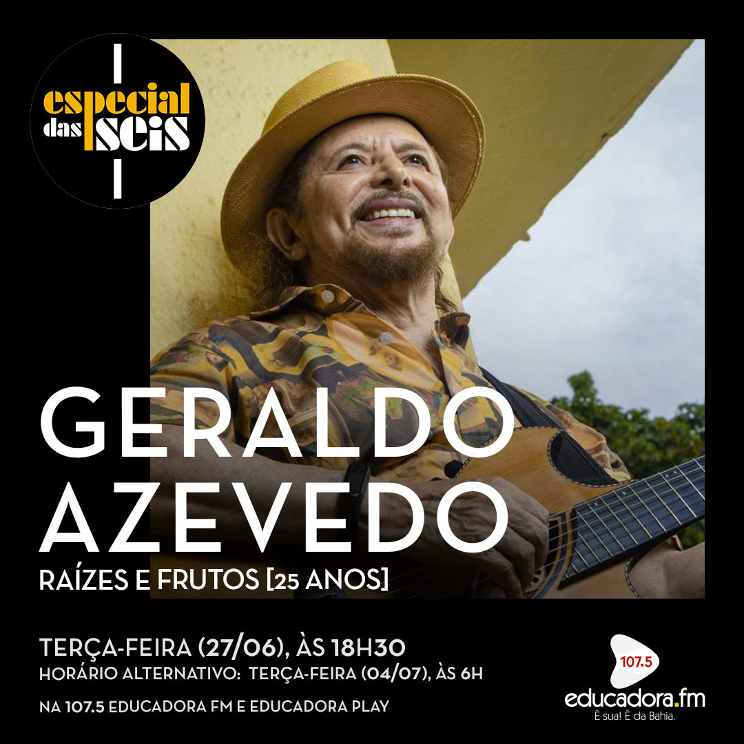 O Especial das Seis desta terça-feira (27) destaca o som de Geraldo Azevedo no álbum duplo “Raízes e Frutos”, trabalho que está completando 25 anos de lançado. O disco, que reúne alguns dos maiores sucessos do violonista, cantor e compositor pernambucano, conta com a produção de Robertinho do Recife e foi gravado em 1998 a convite da gravadora BMG.