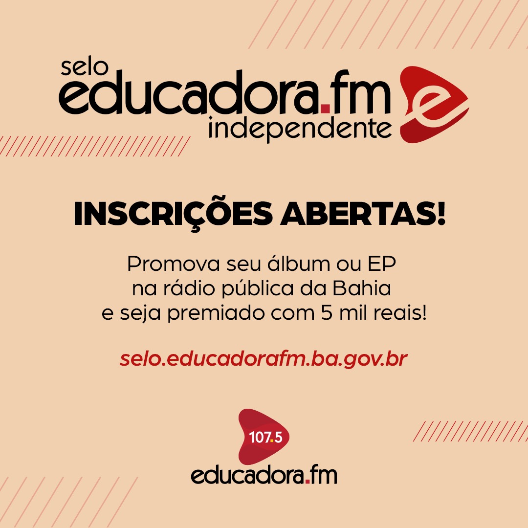 A partir desta quinta-feira, 1 de junho, os grupos e músicos da Bahia podem se inscrever para participarem do Selo Educadora FM Independente. Para solicitar apoio para a promoção de seus álbuns ou EP´s é preciso acessar o site selo.educadorafm.ba.gov.br. A grande novidade este ano é a premiação em dinheiro, no valor de R$ 5 mil, para cada artista selecionado.