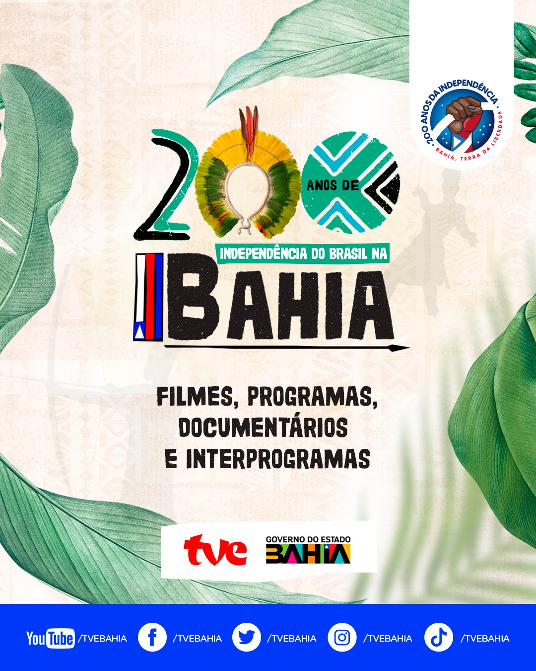 Durante os meses de junho e julho, a TVE celebra os 200 anos da Independência do Brasil na Bahia com a maior cobertura sobre o tema, trazendo filmes, séries, documentários, programas especiais, interprogramas e reportagens que exploram os detalhes deste momento histórico tão importante.