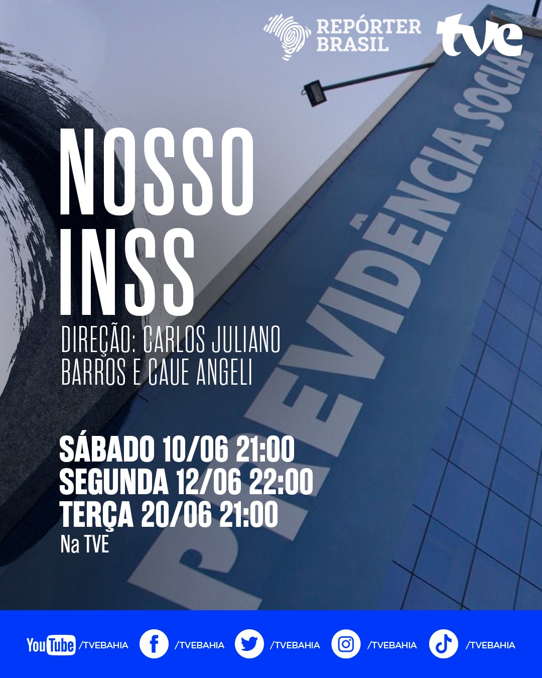 Neste sábado (10), às 21h, a TVE exibe o documentário inédito ‘Nosso INSS’. A produção, que investiga os motivos que levaram um dos principais órgãos federais do país a enfrentar a pior crise da sua história, vai ao ar também na segunda- feira (12), às 22h, excepcionalmente na terça- feira (13), no canal do Youtube, e na terça-feira seguinte (20), às 21h.