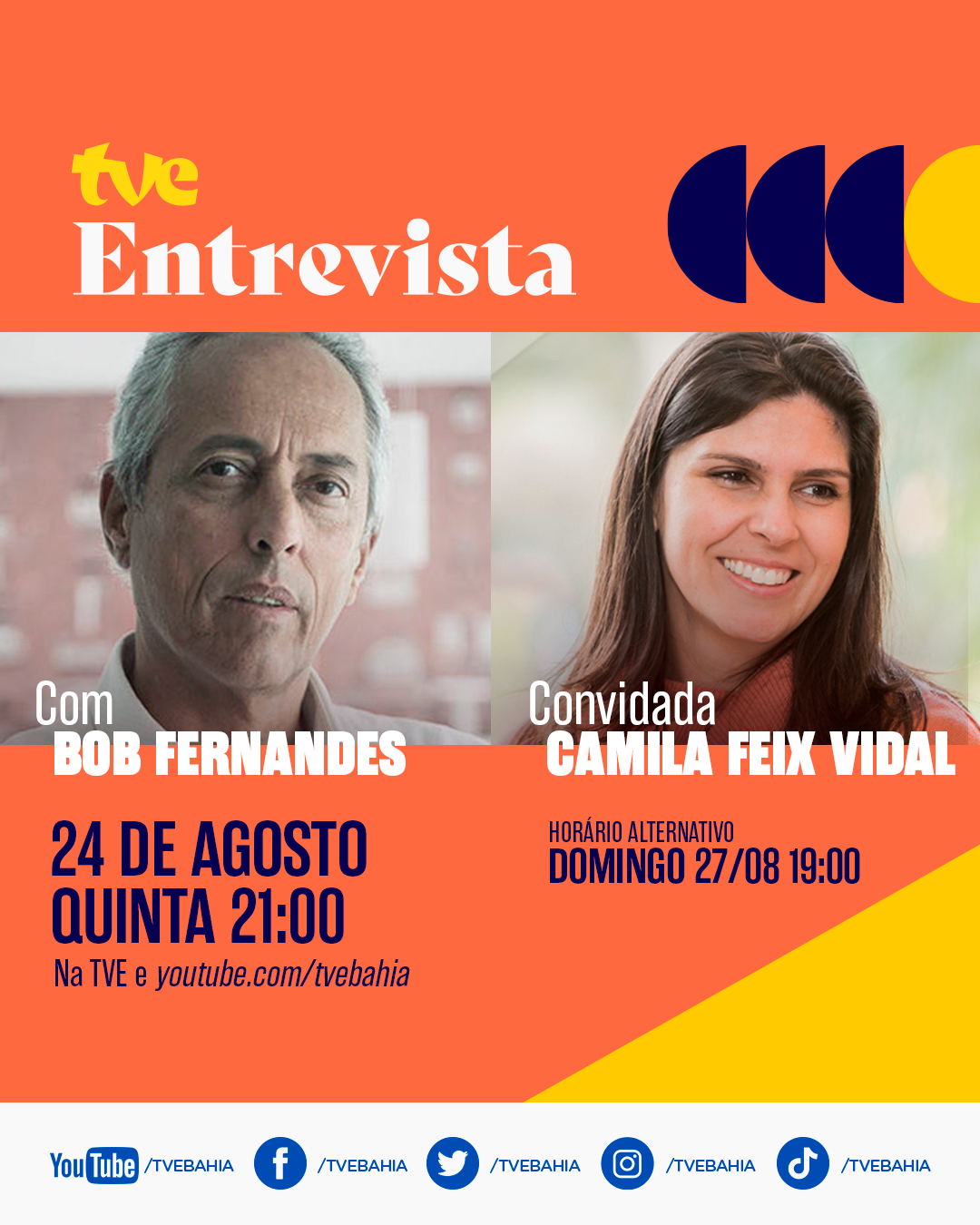 Nesta quinta-feira (24), o TVE Entrevista com Bob Fernandes recebe a professora Camila Feix Vidal, especialista em relações internacionais, sobretudo na relação entre Estados Unidos e América Latina. A atração semanal é exibida sempre às quintas-feiras, às 21h, com horário alternativo aos domingos, às 19h. O conteúdo também estará disponível no Youtube.com/BobFernandesOficial e no Youtube.com/tvebahia.
