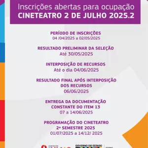 Aberto período para solicitação de pautas para o Cineteatro 2 de Julho 2025.2