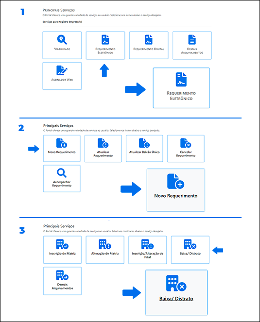 Acesse o Requerimento Eletrônico; escolha a opção Baixa/ Distrato.