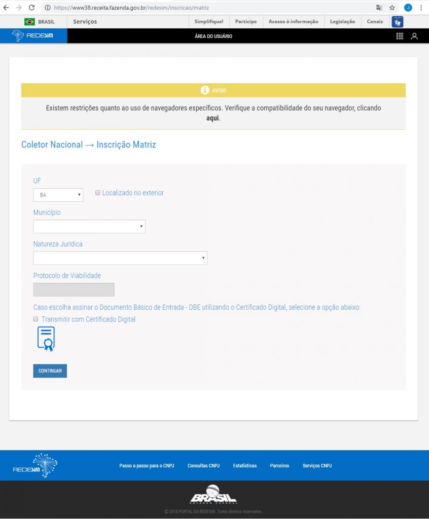 Após o deferimento do Pedido de Viabilidade, preencha o Documento Básico de Entrada (DBE) do CNPJ, disponível no Coletor Nacional.