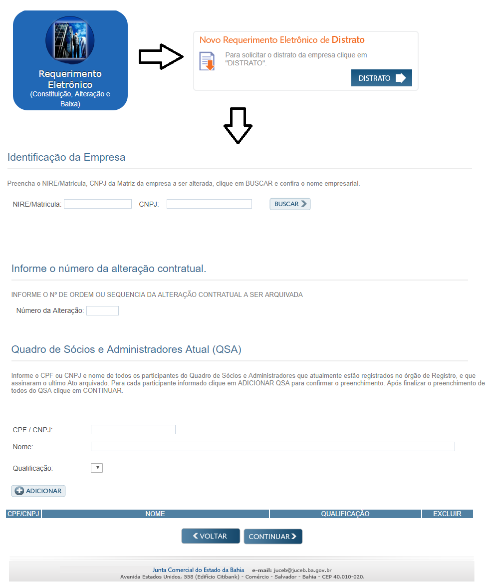 Após o preenchimento do DBE, acesse o Portal de Serviços e selecione a opção Requerimento Eletrônico e Novo Requerimento Eletrônico de Distrato.