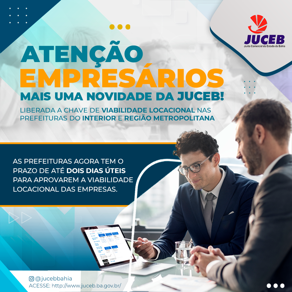 A partir dessa data , 15 de março de 2022, a Juceb com base no disposto na Lei Federal 14.195/2021, autorizou o sistema integrador da REDESIM, - REGIN , a liberar a viabilidade locacional no prazo de dois dias úteis, na ausência de resposta do órgão municipal responsável.