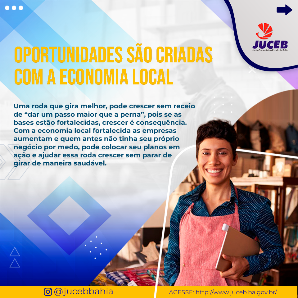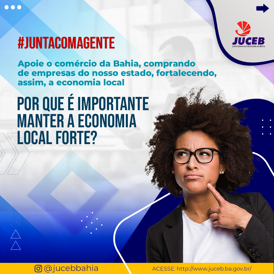 20/05/2021 #JuntaComAGenteApoie o comércio da Bahia comprando de empresas do nosso estado, fortalecendo, assim, a economia local.Sigam-nos no Instagram @JucebBahia Galeria: