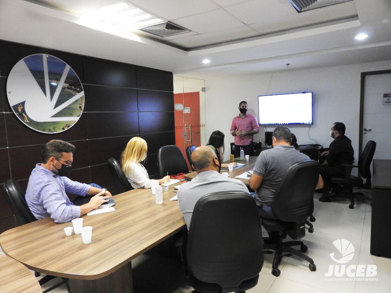 Nesta quarta-feira (04), a Juceb recebeu representantes da Secretaria Municipal da Fazenda (Sefaz) e da Secretaria Municipal de Desenvolvimento Urbano (Sedur), para uma reunião técnica, a fim de alinhar alguns ajustes necessários para melhorias na integração da capital à Redesim.