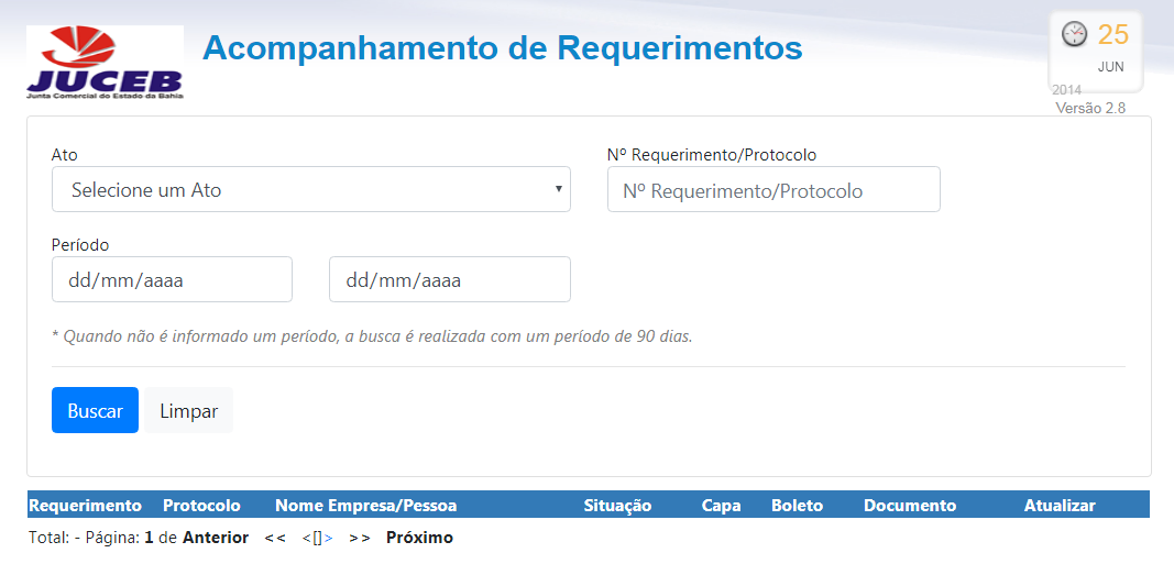 Será possível também através desta funcionalidade consultar Requerimentos Eletrônicos.