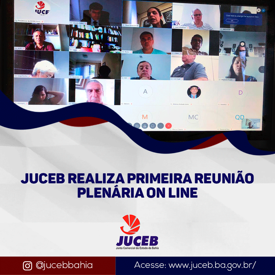 A Juceb apostou na tecnologia para realizar sua primeira sessão plenária por vídeo conferência na tarde desta terça-feira (7). A Presidência, Secretaria geral, Assessoria técnica e o corpo de Vogais puderam testar, com sucesso, o sistema de deliberação remota, que permitirá ao órgão dar continuidade à agenda durante toda a fase de combate e prevenção ao coronavírus.