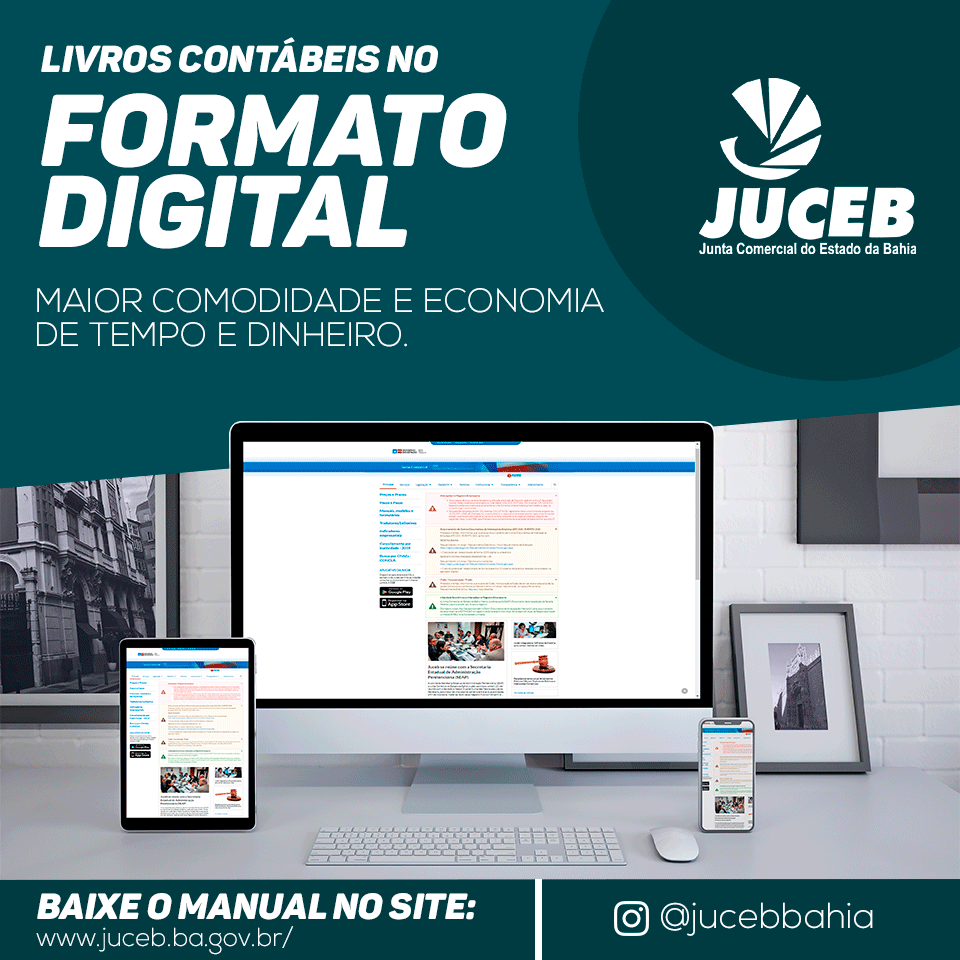Com a finalidade de oferecer um serviço cada vez mais ágil, cômodo e econômico para os empresários baianos, desde 2018, a Junta Comercial do Estado da Bahia (Juceb), passou a receber os livros contábeis no formato digital, por meio da utilização de Certificado Digital.