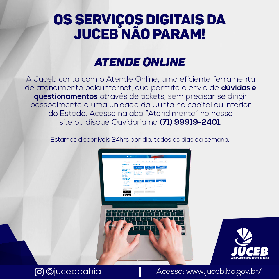 Prezados clientes, para dúvidas ou questionamentos, a Juceb conta com os seguintes canais de atendimento remoto: