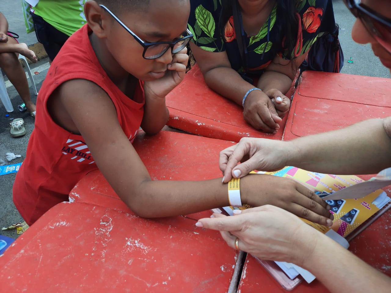 As equipes volantes também distribuem pulseiras de identificação para crianças e, este ano, inovou com as mesmas peças voltadas para pessoas surdas, visando qualificar e facilitar a abordagem policial a este grupo nos portais de entrada da festa.