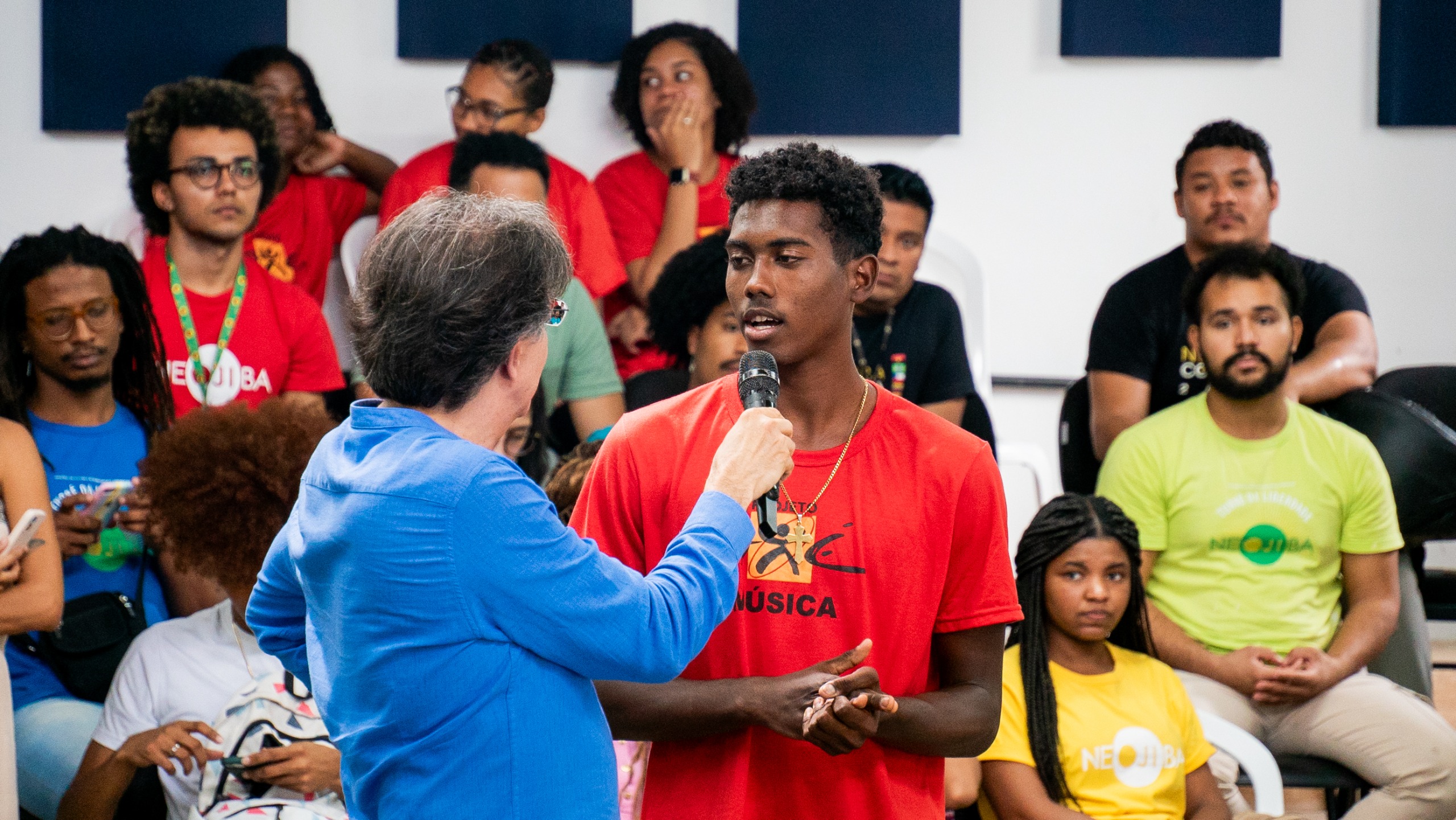 O bate-papo foi conduzido pelo maestro e diretor-geral do Neojiba, Ricardo Castro, e contou, ainda, com as presenças de Helmut Schned, coordenado-geral do Projeto Axé; de representantes da SJDH, como Iara Farias - coordenadora de Proteção à Criança e ao Adolescentes -, Ana Vilas Boas - coordenadora técnica do Neojiba - e Liliane Tavares - da SUDH.