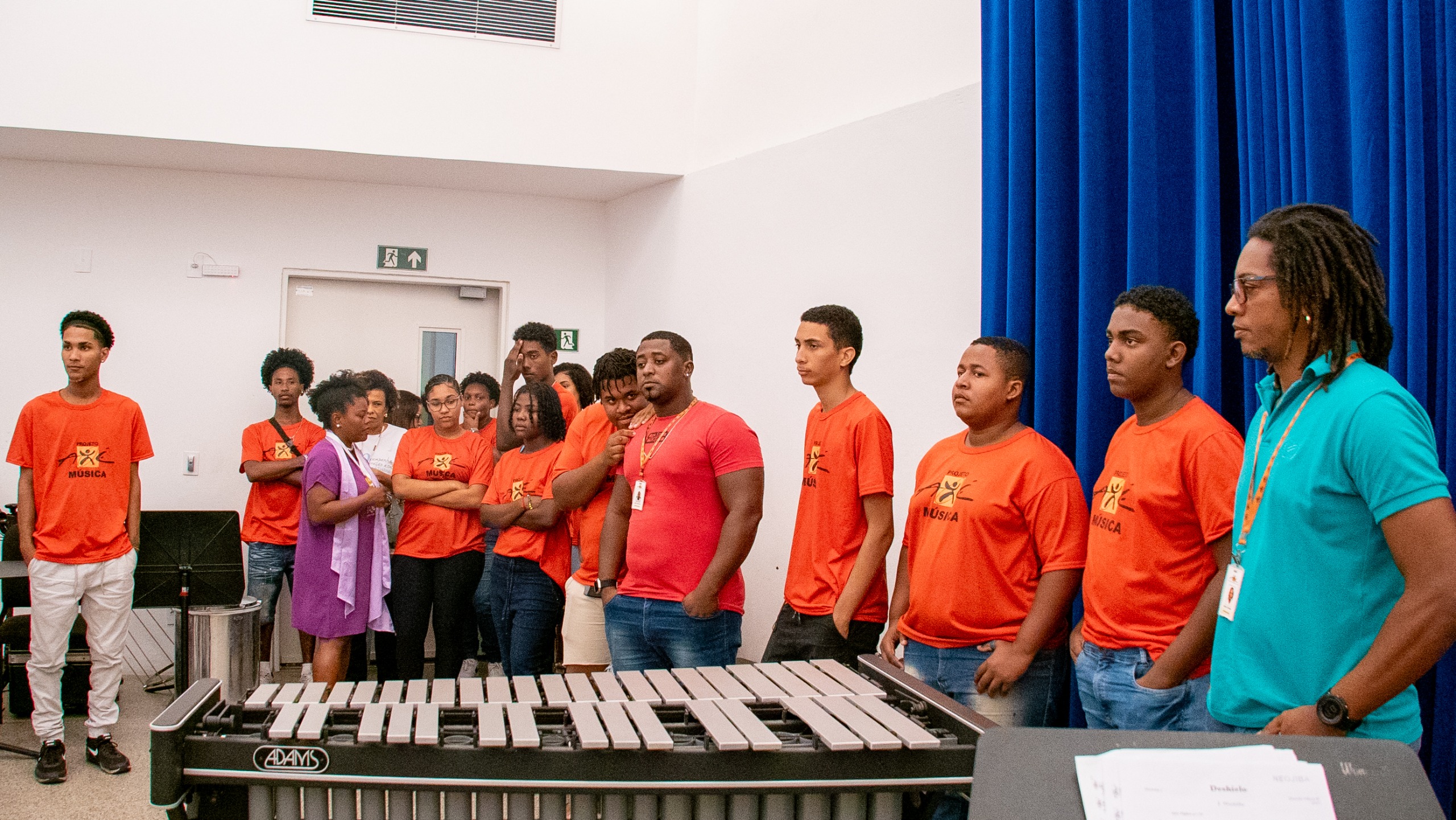 O educando Deivisson André falou do seu desejo em seguir tocando percussão, e defendeu sobre a necessidade de investir em equipamentos musicais e das pessoas terem acesso a ações que possam promover a arte e a cultura, além de transmitir conhecimento. “A gente precisa ter oportunidade de ter bons instrumentos e poder ensinar para outras pessoas. Queremos aprender para que possamos compartilhar esse aprendizado com outros jovens”, ressaltou o jovem músico.
