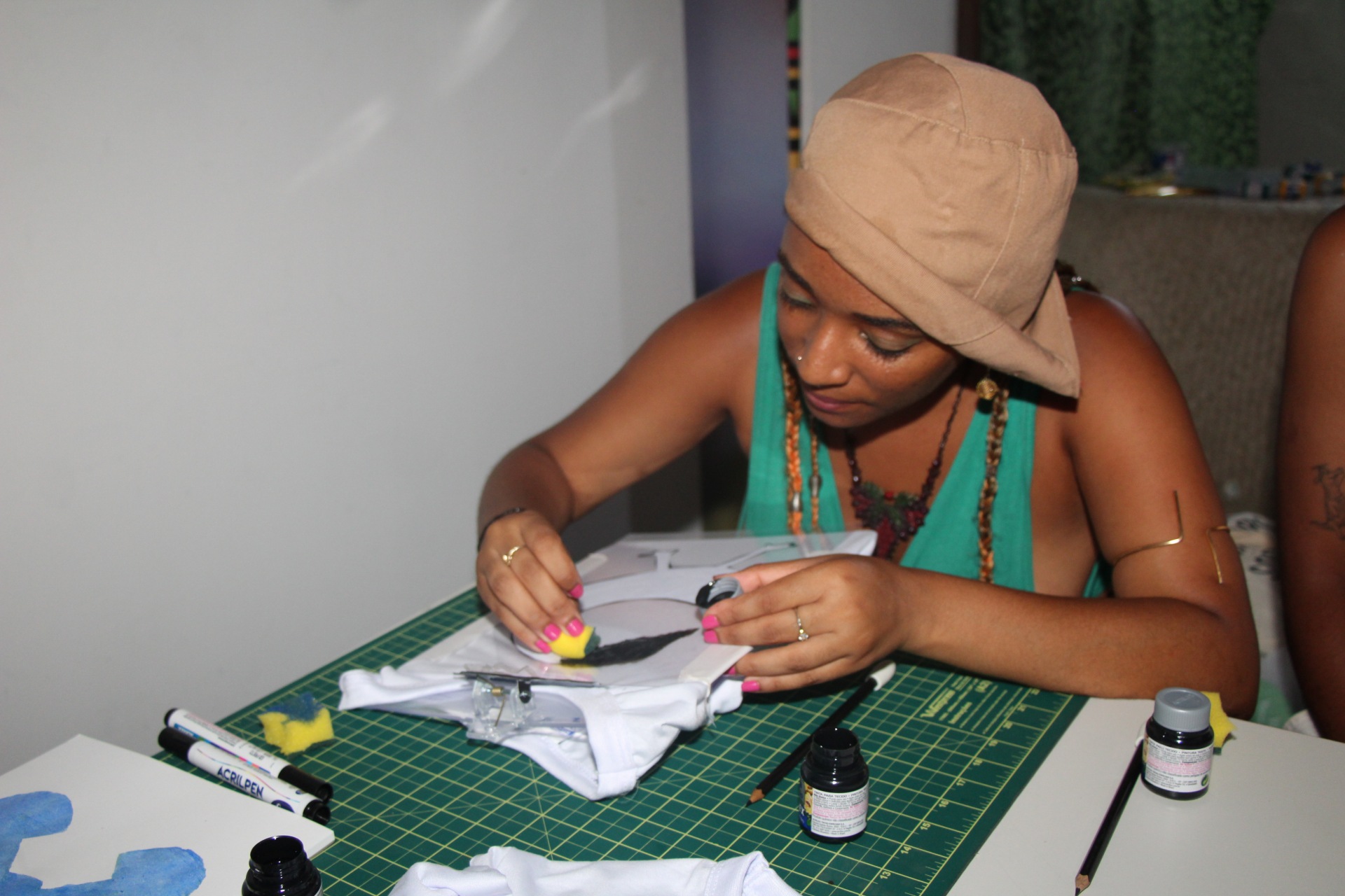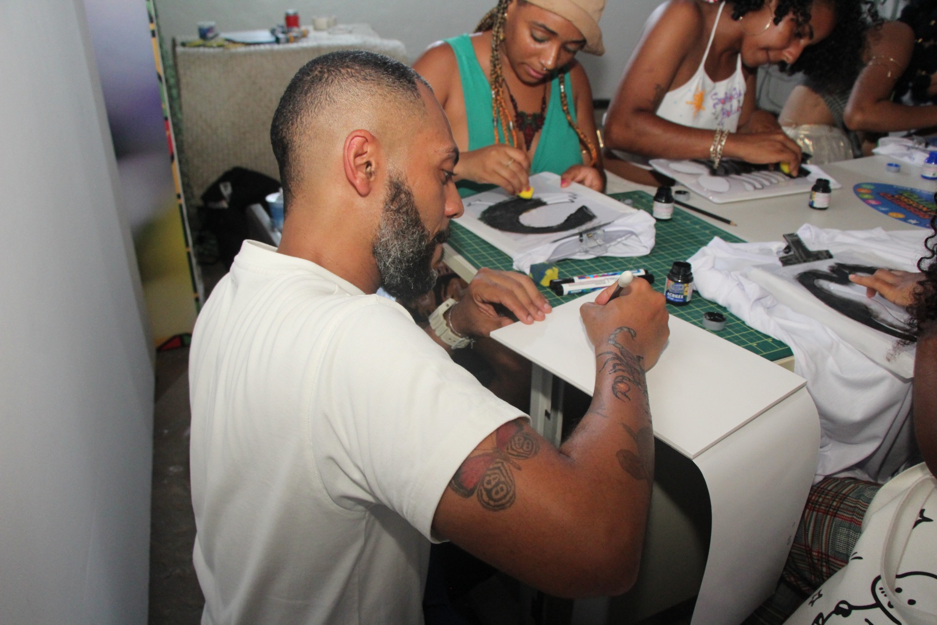 Orientadas pelo professor de artes visuais e ilustrador Carlos Victor, que é educador do Projeto Axé, os participantes aprenderam sobre aplicação do estêncil - técnica de grafiti utilizada para gravação de ilustrações e outros desenhos em superfícies. Mas também entenderam significados dos símbolos Adinkra, originários dos Akans - um grupo étnico de Gyaman, atual Gana, que congrega diversos povos. “É uma oficina de molde vazado em tecido, que se baseia nos símbolos Adinkra, que são originários de Gana, na África, e que dialoga com os direitos humanos. E é muito importante que um espaço da Feira Literária possa abordar temas que colaboram para a educação antirracista e também com a arte”, afirmou Araújo.