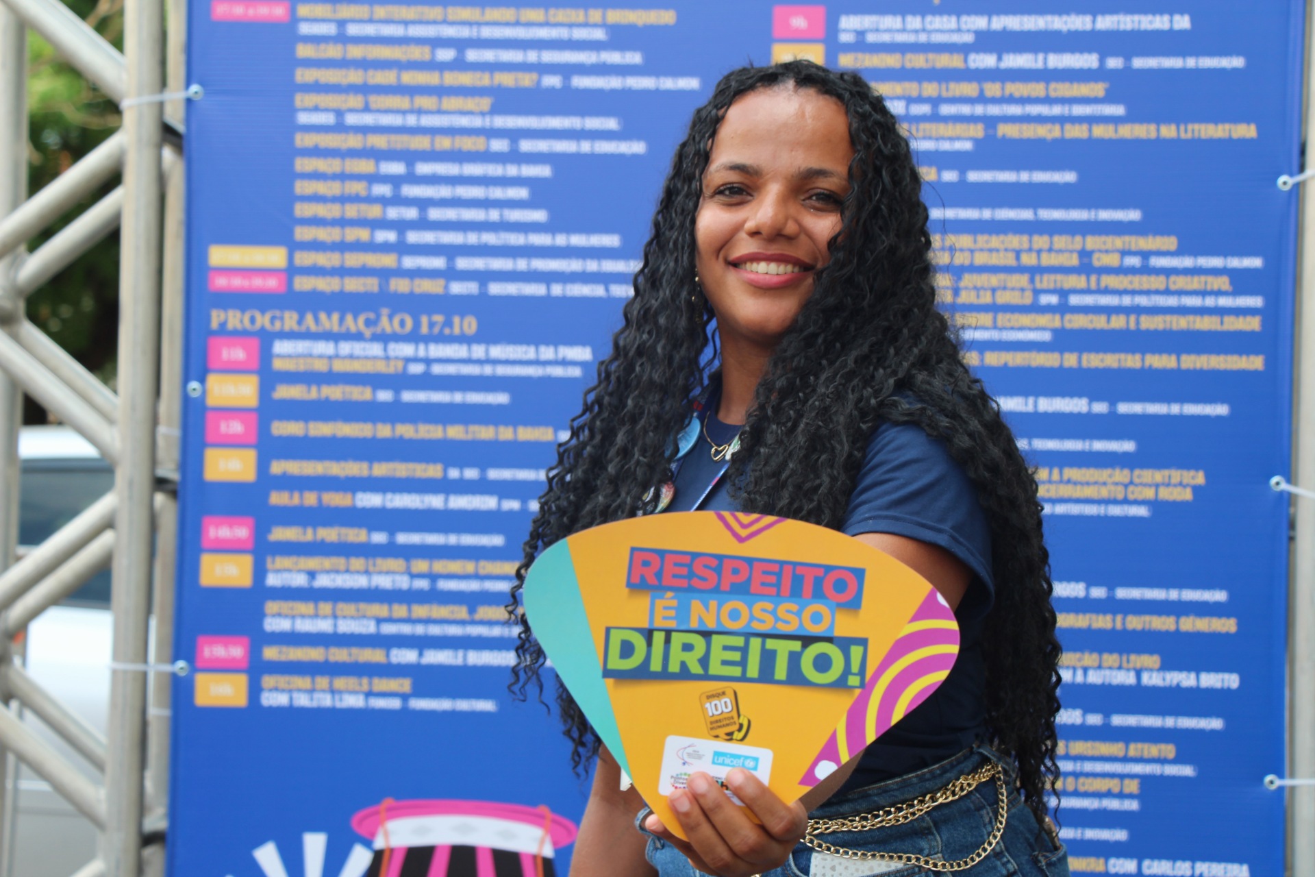 Ainda norteada pelo eixo estratégico ‘Educação e Cultura em Direitos Humanos’, as equipes da SJDH distribuíram peças da campanha ‘Respeito é Nosso Direito’, disseminando mensagens sobre direitos de públicos prioritários como crianças e adolescentes, pessoas idosas, pessoas com deficiência e a comunidade LGBTQIAPN+.