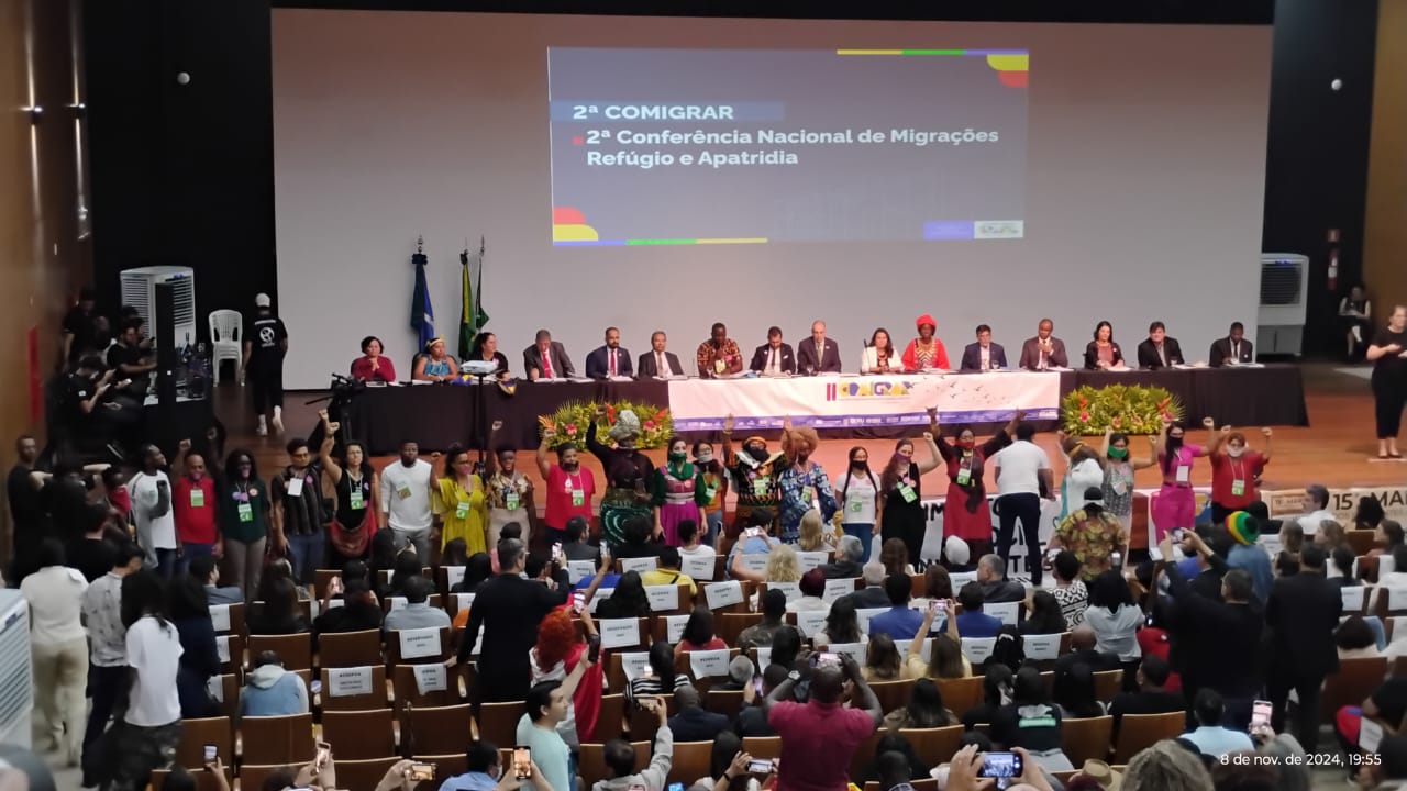 "Aqui vivo, aqui voto". Com este reclame, as/os participantes da 2ª Conferência Nacional de Migrações, Refúgio e Apatridia (Comigrar), reivindicaram o direito ao voto para migrantes ainda não naturalizadas/os brasileiras/os. A proposta é uma das 60 selecionadas no debate realizado neste fim de semana, em Brasília-DF, sob a coordenação da Secretaria Nacional de Justiça (Senajus), do Ministério da Justiça e Segurança Pública (MJSP), com o tema “Cidadania em Movimento”. O evento reuniu representantes dos estados, de 8 a 10/11, na Universidade de Brasília (UnB), onde oito delegadas/os, saídas/os da etapa estadual do debate, representaram a Bahia.