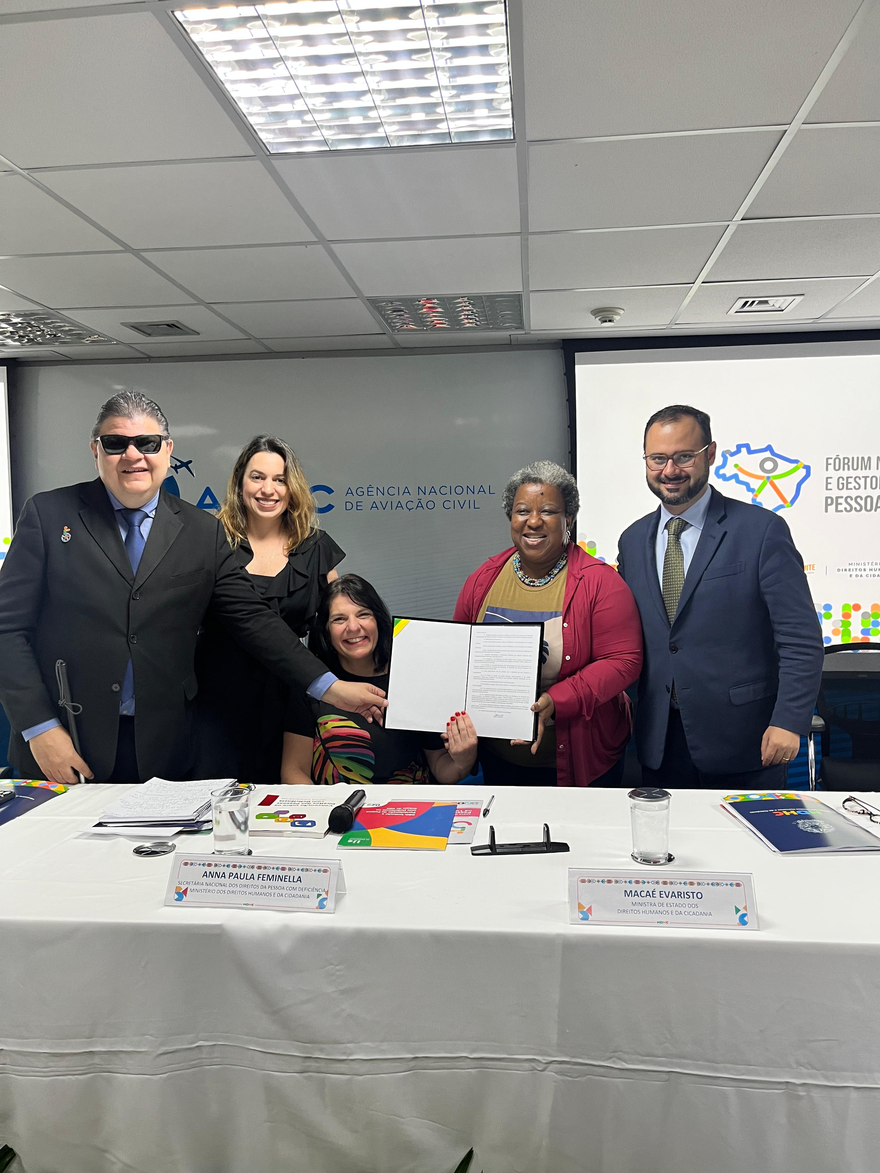 A Secretaria de Justiça e Direitos Humanos (SJDH) oficializou a adesão do Governo da Bahia ao Fórum Nacional de Gestores e Gestoras de Políticas para Pessoas com Deficiência (FNGPD) na manhã desta quinta-feira, 28, em Brasília. A assinatura se deu no ato de lançamento do Fórum, no auditório da ANAC (Agência Nacional de Aviação Civil). O Chefe de Gabinete, Raimundo Nascimento, e o assessor técnico da Superintendência dos Direitos da Pessoa com Deficiência (Sudef/SJDH), Matheus Martins, representaram a SJDH no evento, que segue até amanhã (29), com debates sobre o tema.