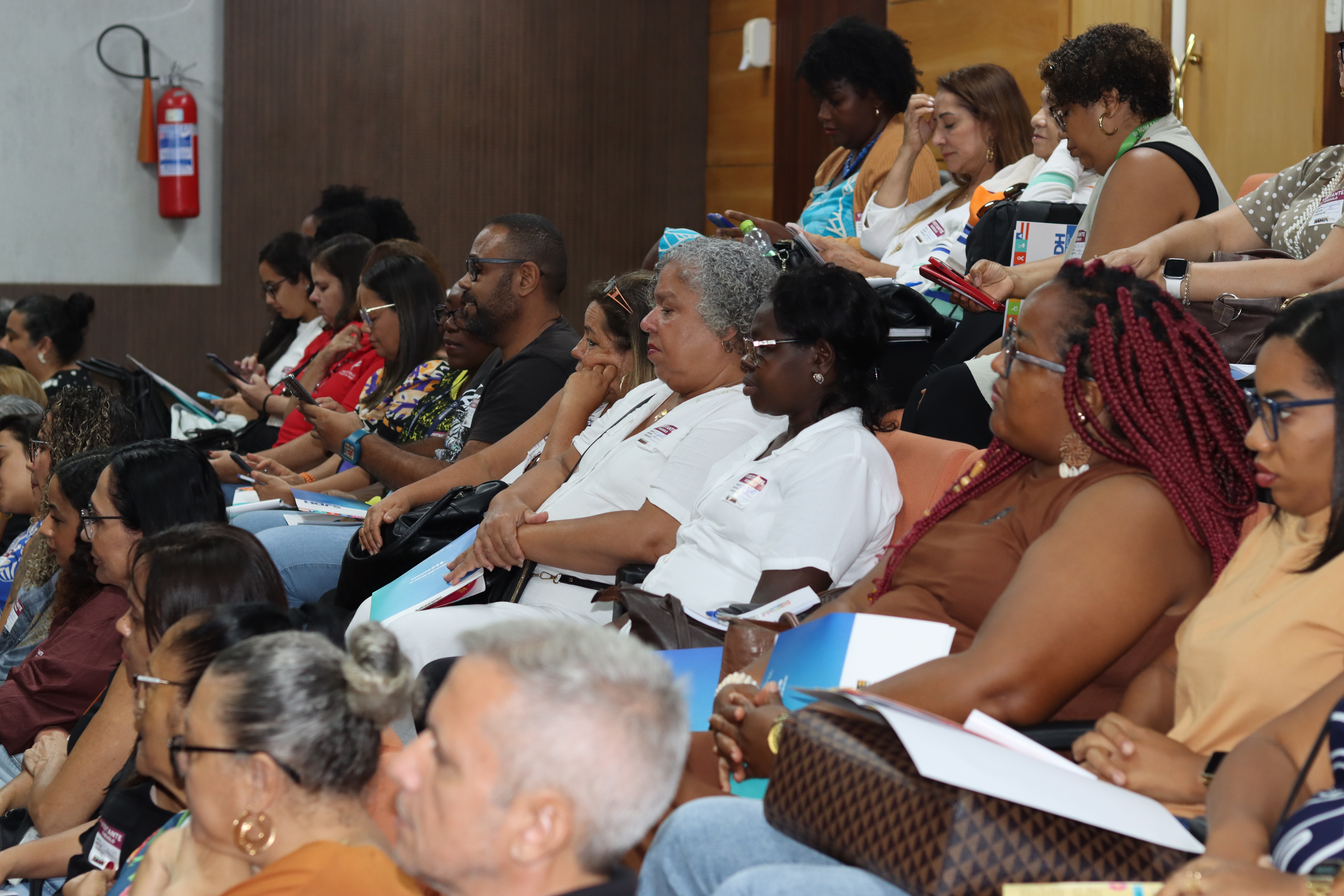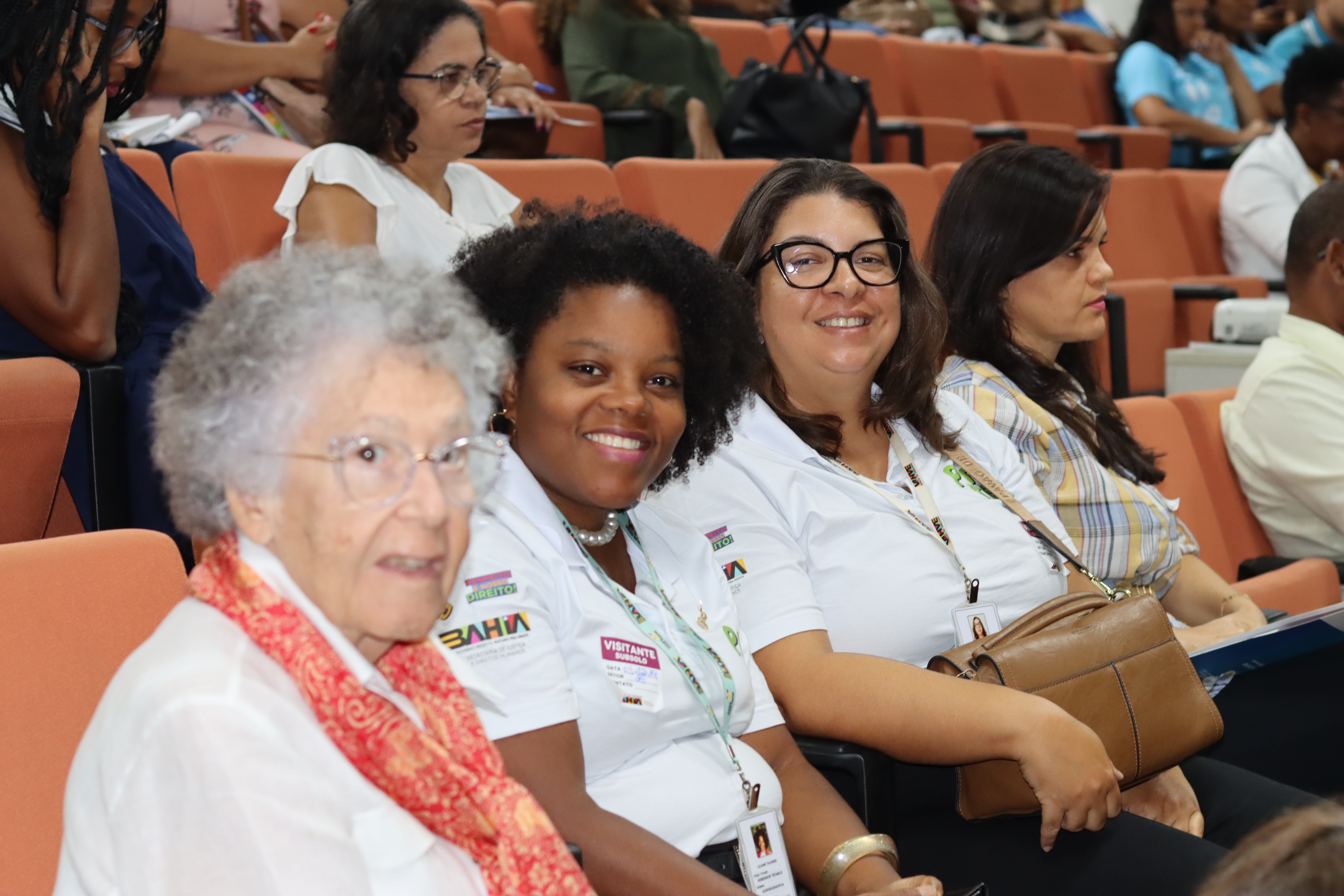 Antes da palestra, a mesa de honra foi composta pela superintendente de Apoio e Defesa aos Direitos Humanos da SJDH, Trícia Calmon; a coordenadora do Unicef da Bahia, Sergipe e Minas Gerais, Helena Oliveira; a representante da SEC, Larissa Lima; a promotora de Justiça, Márcia Rabelo; a coordenadora do Núcleo de Defesa dos Direitos da Criança e do Adolescente da Defensoria Pública do Estado, Gisele Aguiar; e a integrante do Conselho Estadual dos Direitos da Criança e do Adolescente (CECA), Edilene Freitas.