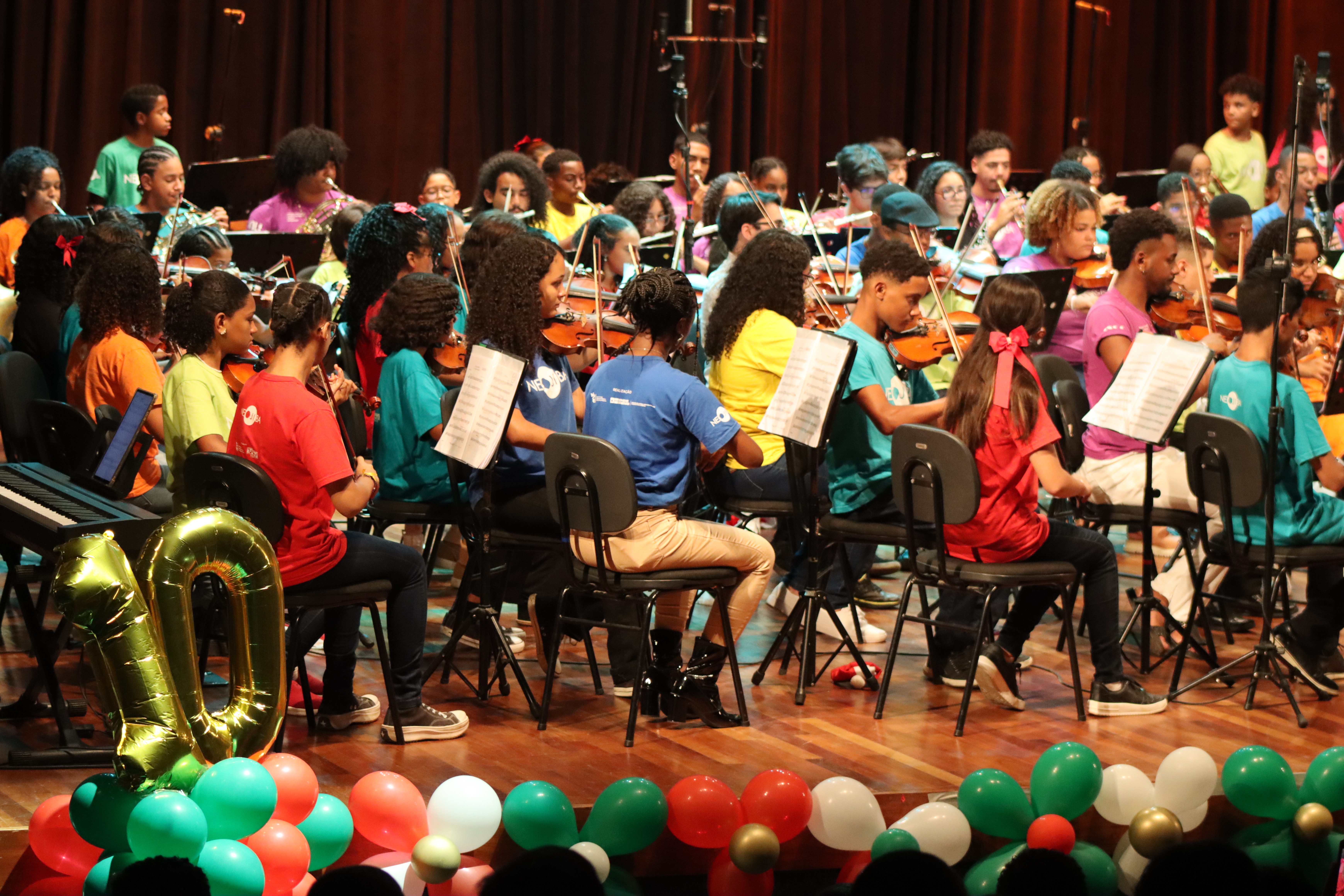 João Pedro da Silva Matos, 16, realizou o sonho de tocar percussão através do Núcleo de Orquestras Infantis e Juvenis da Bahia (Neojiba). No último sábado (14), ele se juntou a outros integrantes do Núcleo Territorial Neojiba Feira de Santana - Antônio Gasparini, no Teatro do Sesc, em Feira de Santana, para se apresentar em dois lindos concertos que comemorou os 10 anos da unidade. Com um repertório diverso que emocionou a plateia, as duas apresentações foram executadas pelos integrantes da Orquestra Infantojuvenil, coros Cênico e Infantojuvenil e iniciação musical.