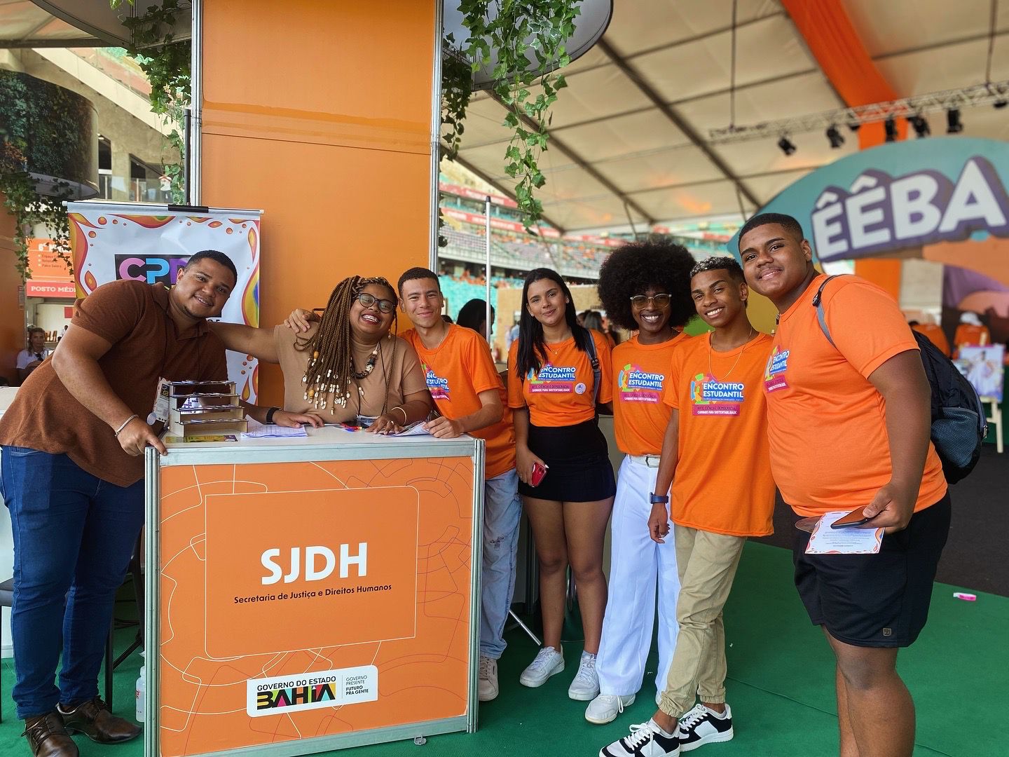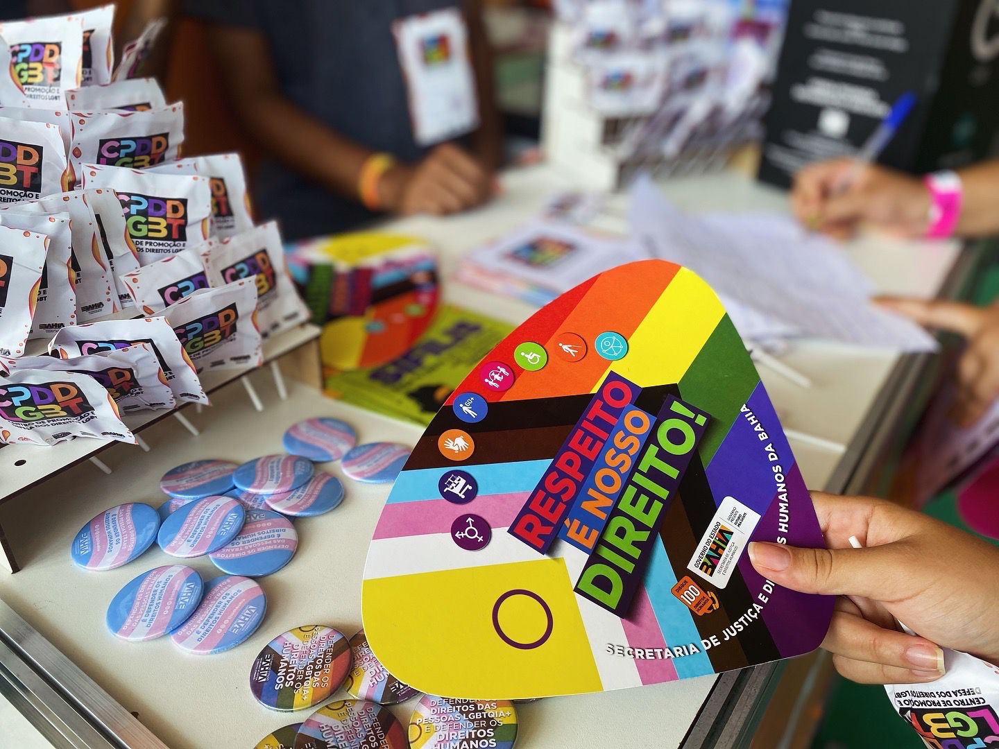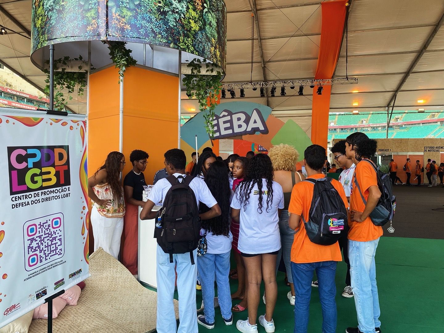Promover a garantia dos direitos às populações LGBTQIAPN+. Essa foi a missão da Secretaria de Justiça e Direitos Humanos (SJDH), no Encontro Estudantil da Rede Estadual de Educação (ÊÊBA), que reúne mais de 5 mil estudantes dos 27 territórios da Bahia, na Arena Fonte Nova. Iniciado nesta terça-feira (17), a ação, promovida pela Secretaria da Educação (SEC), que traz o tema “Arte, ciência e democracia: caminhos para a sustentabilidade”, acontece até quinta-feira (19). O Centro de Promoção e Defesa dos LGBT (CPDD), equipamento da SJDH, participa da ação com distribuição de materiais informativos e disponibiliza orientação sobre os direitos deste segmento e rodas de conversa.
