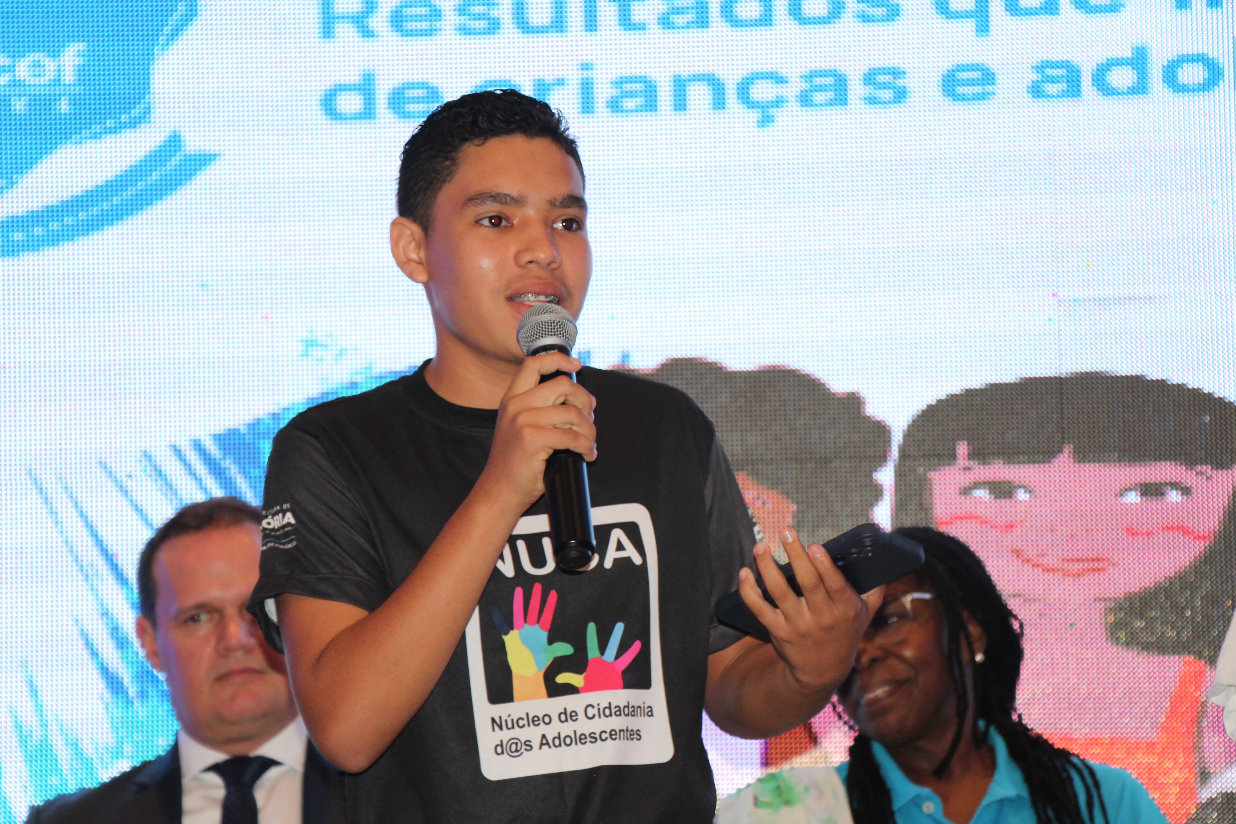 Um dos momentos mais marcantes da cerimônia foi a homenagem a Iara Farias, gestora da Coordenação de Proteção à Criança e ao Adolescente (CPCA/SJDH). Reconhecida como referência nacional na defesa dos direitos de crianças e adolescentes, dona Iara recebeu a honraria especial do UNICEF (Fundo das Nações Unidas para a Infância), por sua trajetória e dedicação incansável em favor das novas gerações.