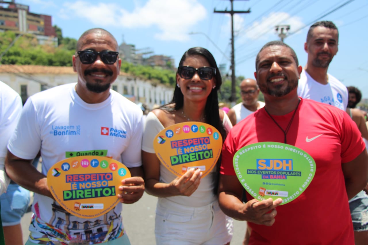 No trajeto rumo à Colina Sagrada, a Secretaria de Justiça e Direitos Humanos (SJDH) realizou a distribuição de materiais da campanha "Respeito é Nosso Direito!", como parte do projeto “Direitos Humanos em Eventos Populares da Bahia”, trazendo mensagens publicitárias voltadas à prevenção, defesa e promoção dos direitos de segmentos vulnerabilizados da população. Crianças também receberam pulseiras de identificação.