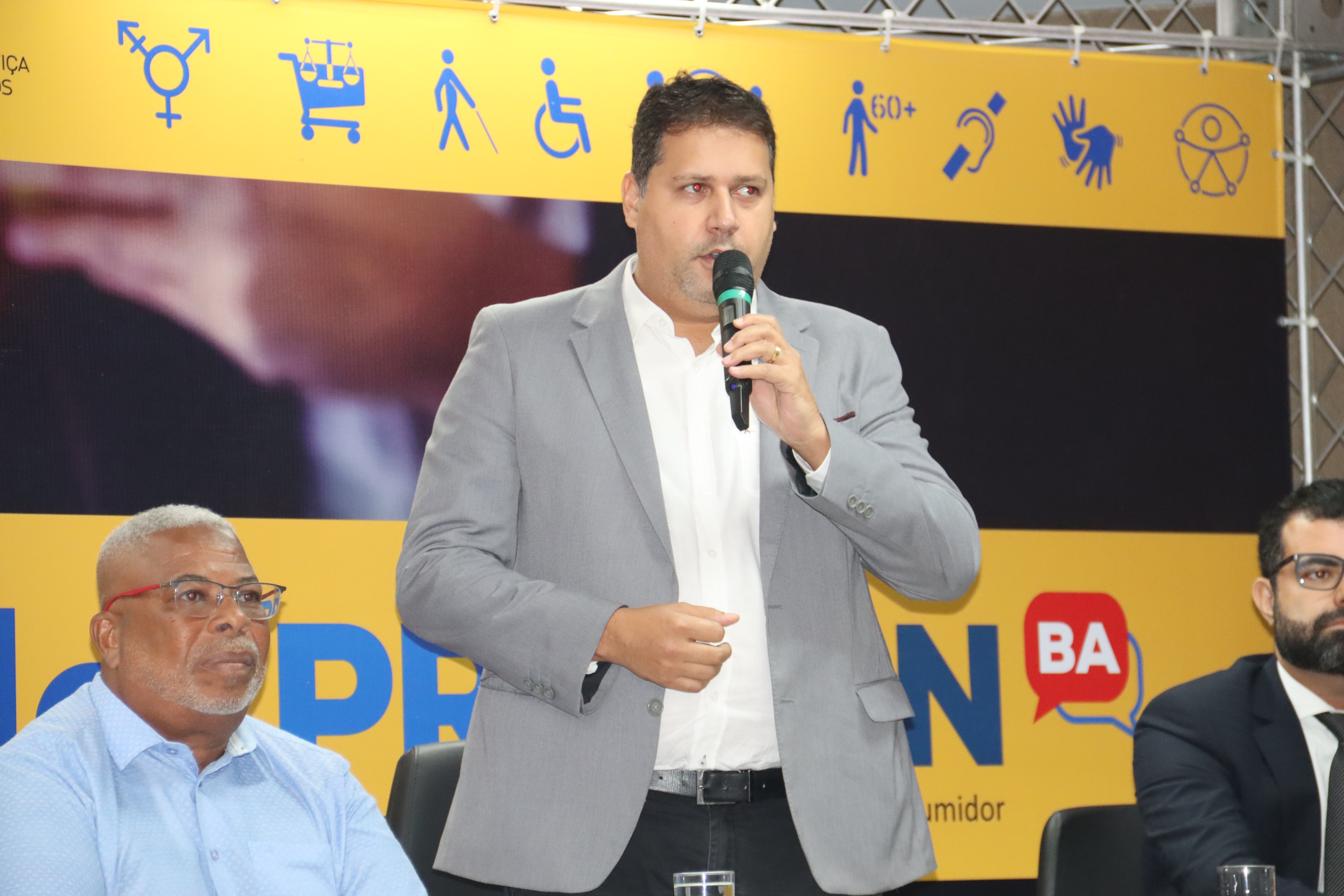 Participaram do evento o superintendente de Políticas para Pessoas com Deficiência, Marcelo Oliveira, o diretor geral da SJDH, Jeferson Ferreira, a diretora Operacional da SAC, Nilza Rios, a delegada da Coordenação de Fiscalização de Produtos Controlados da Polícia Civil, Daniela Fernandez, a coordenadora do Ceacon e promotora, Thelma Leal, e Jonas Ferraz Maia, representante da OAB BA, entre outras autoridades.